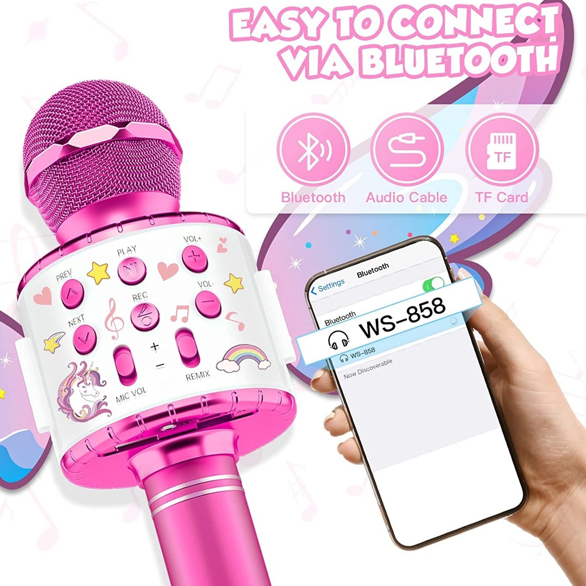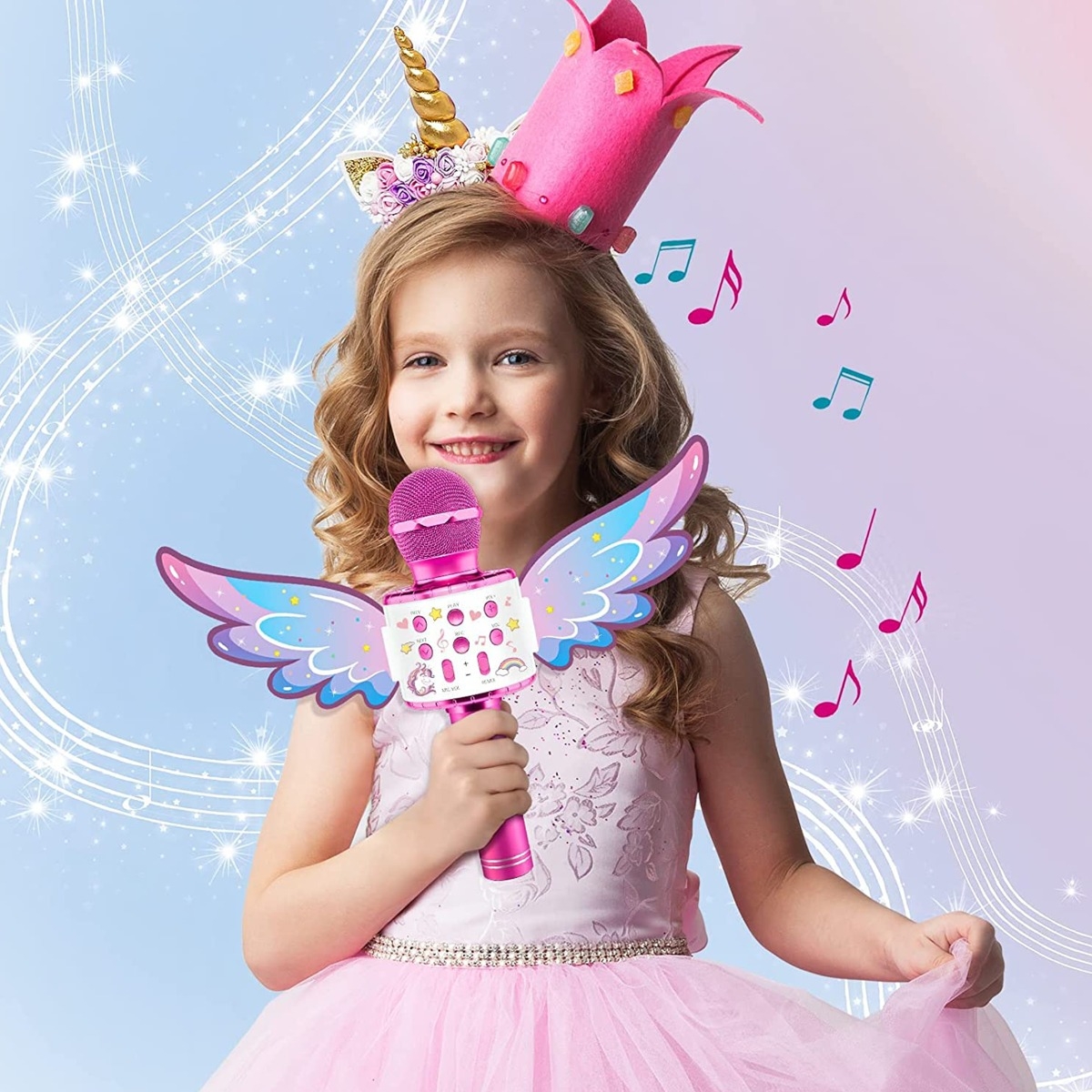 Girls Metallic Sing-Along Karaoke Speaker Microphone with Detachable Wings (Only Ground Shipping)