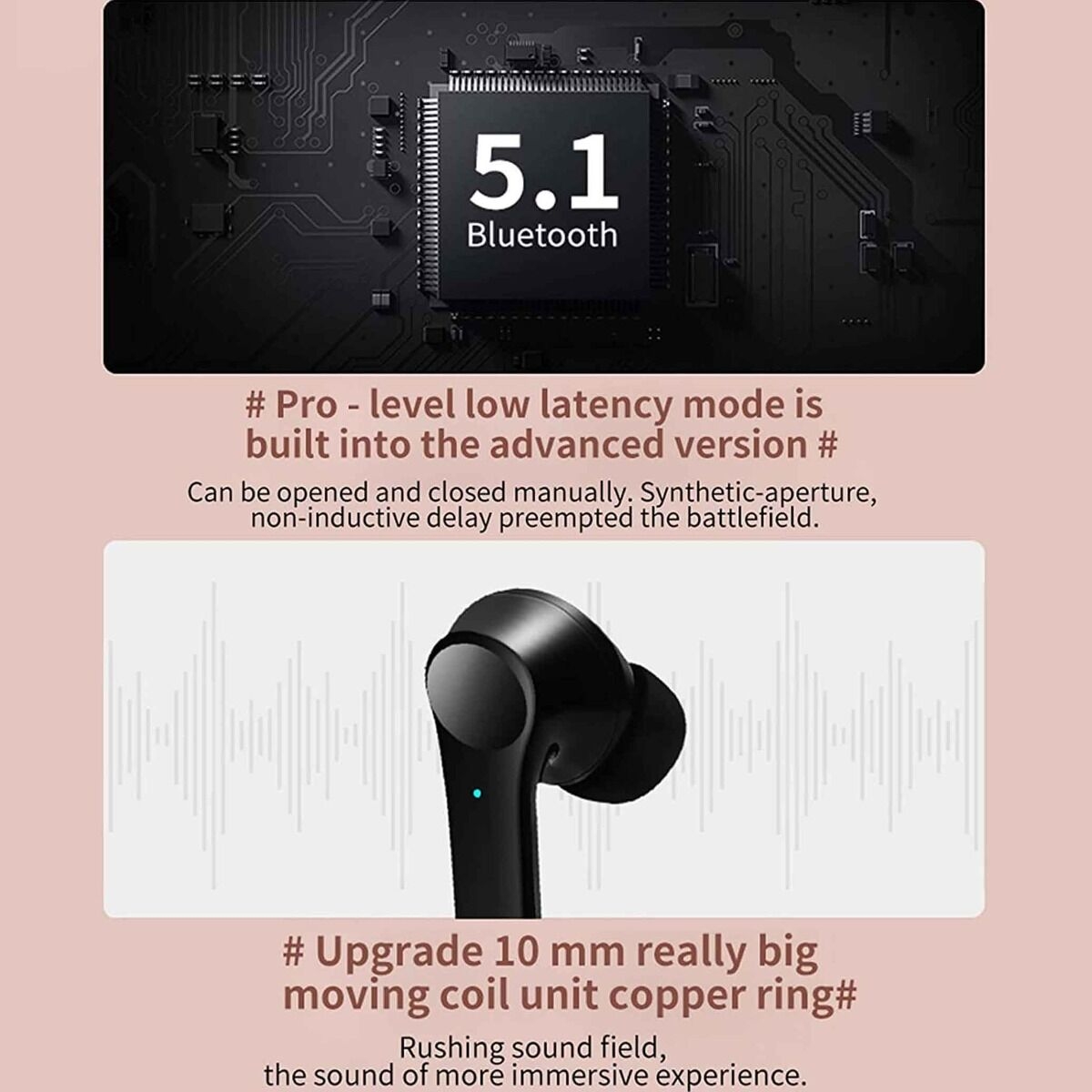 Bytech Bluetooth Plated Earbuds - BLACK (Only Ground Shipping)