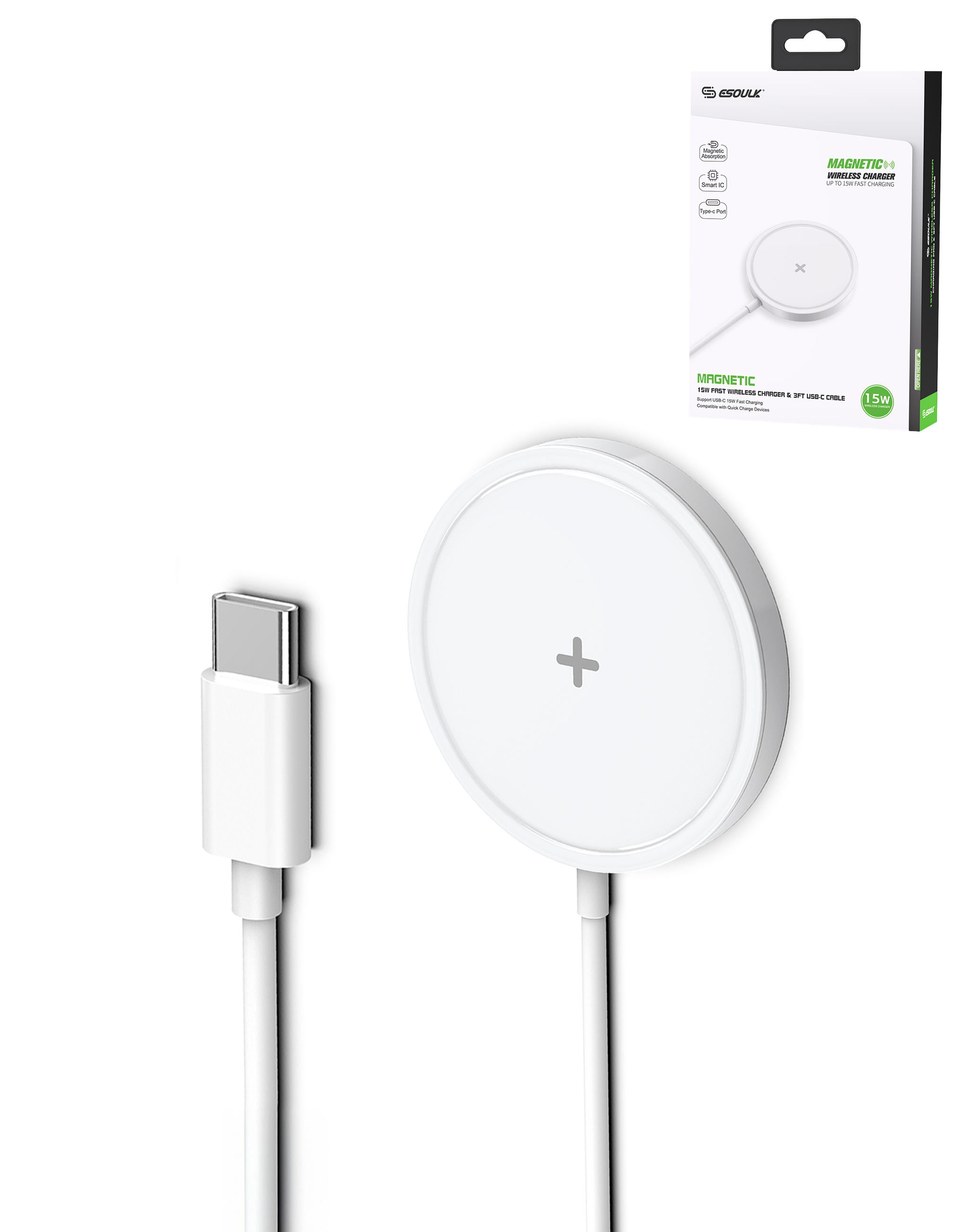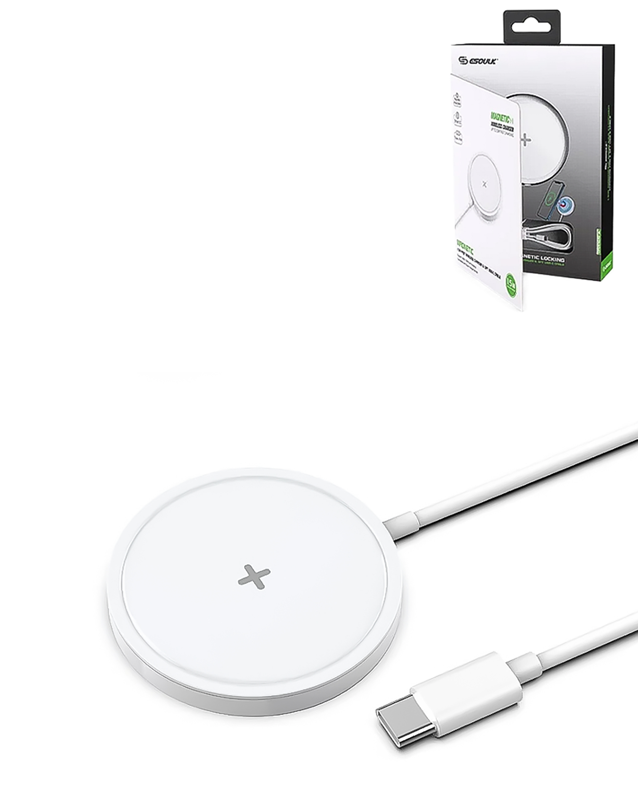 Esoulk Magnetic Wireless Charger (15W) (WHITE) (Only Ground Shipping)
