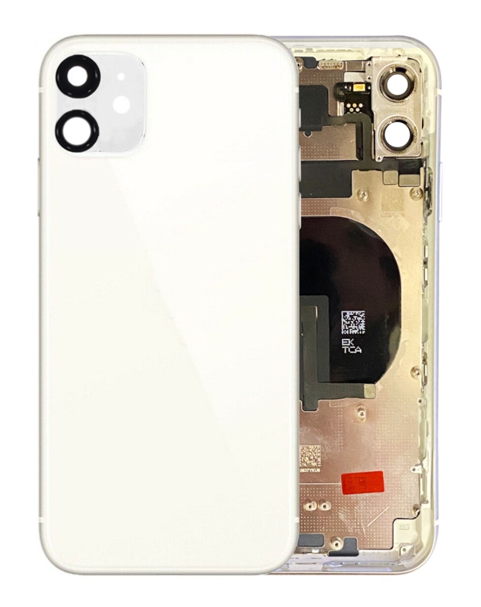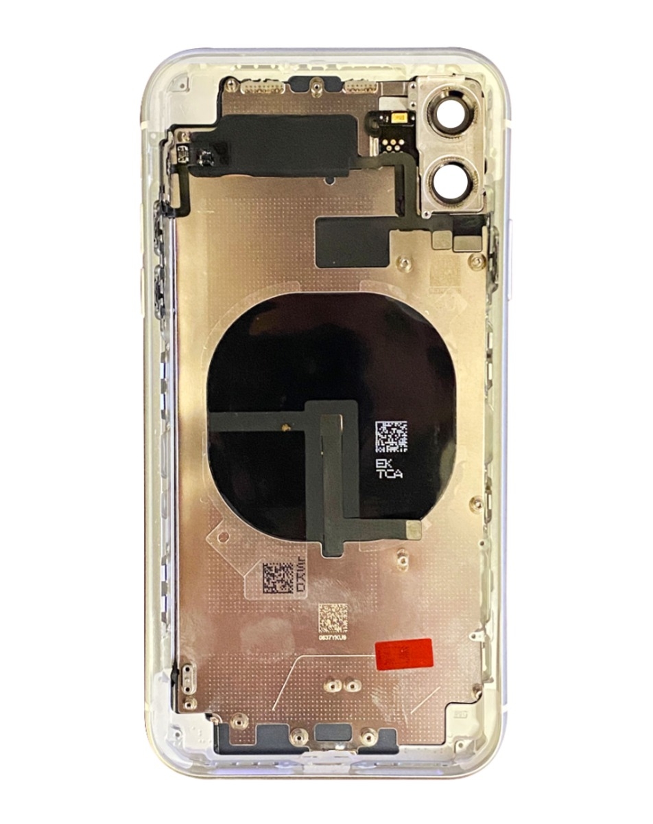 Shop the Back Housing Frame with small components pre-installed for iPhone 11, no logo, in white.