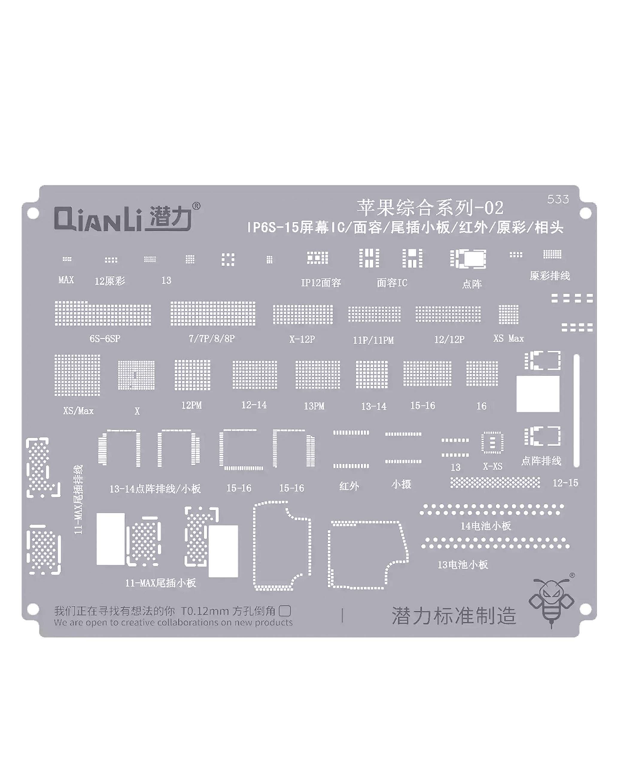 QianLi 2D Stencil Display for iP 6S to 16 IC / Face ID / Tail Plug / Infrared Camera / True Tone / Camera