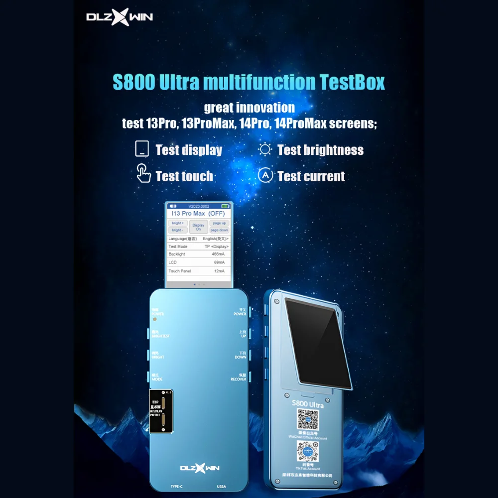 Shop the DLZ S800 Ultra LCD Screen Tester for iPhone 13 Pro, 13 Pro Max, 14 Pro, 14 Pro Max, 15 Pro, 15 Pro Max, and iPads.