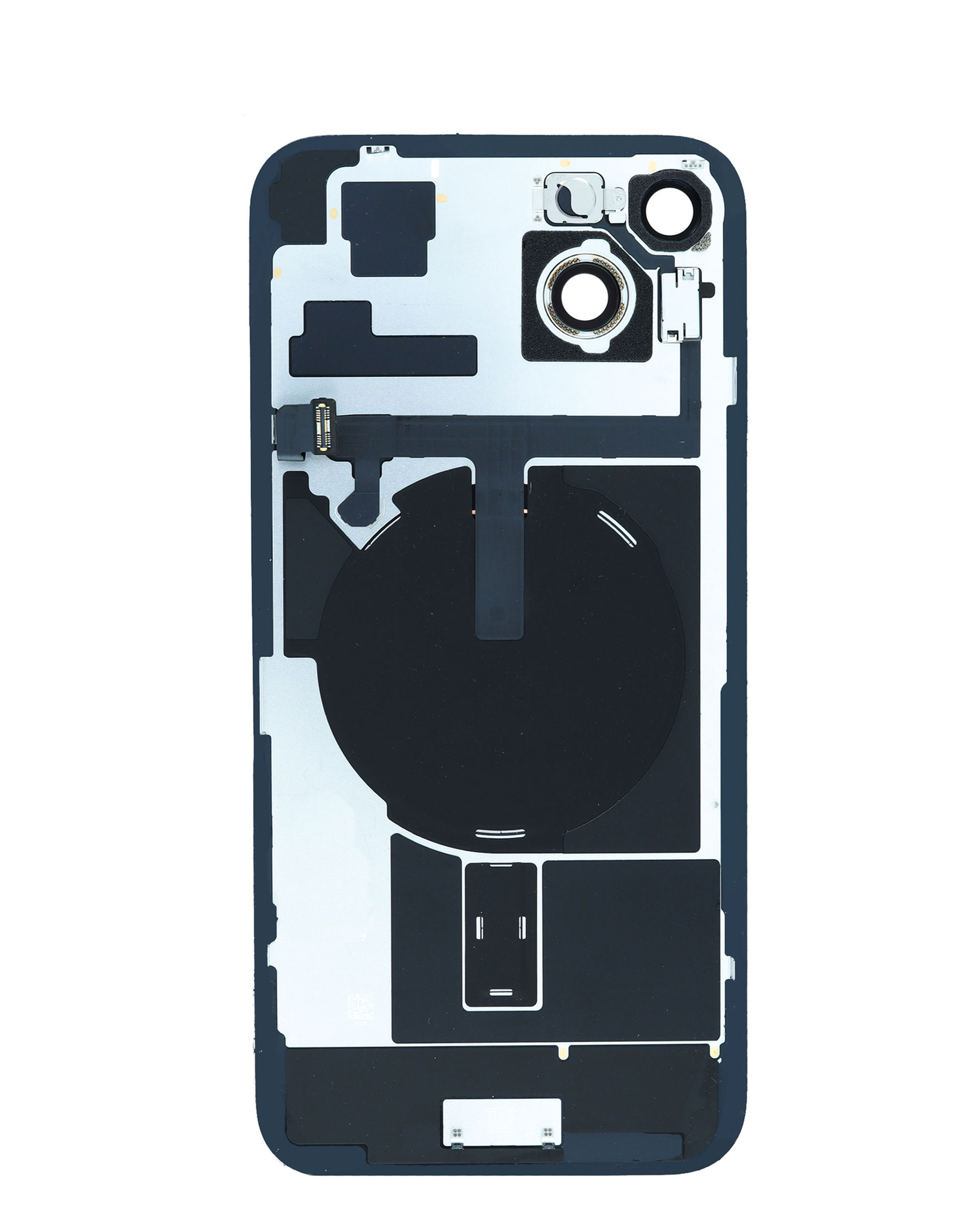 Order the back glass with frame, wireless NFC charging flex, and MagSafe magnet for iPhone 15 Plus — black, OEM pull B grade. Back Glass with MagSafe Magnet & NFC & Flashlight Flex for iPhone 15 Plus (BLACK) (OEM Pull B Grade)