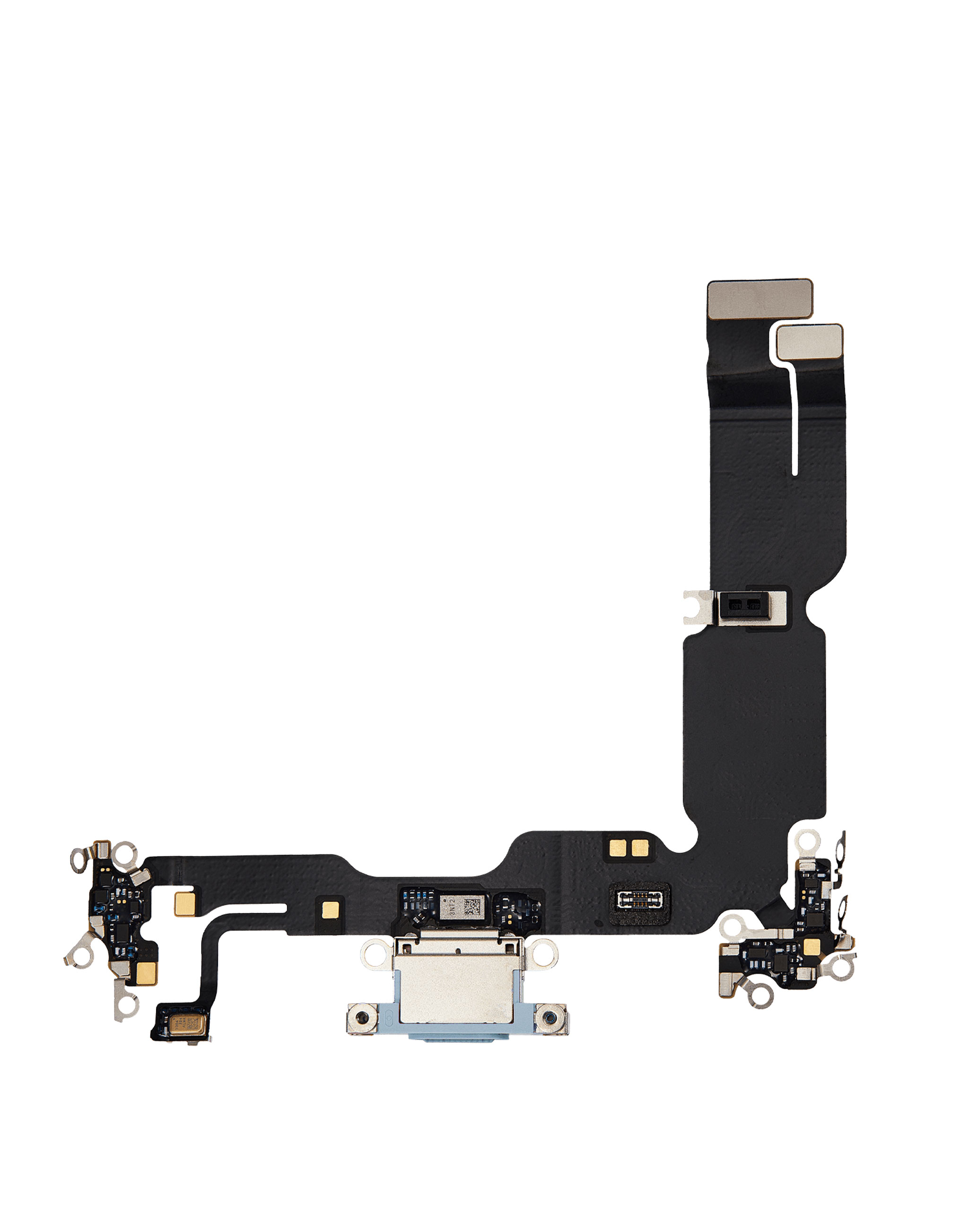 Stock up on the Charging Port Flex Cable for iPhone 15 Plus in Blue, aftermarket version.