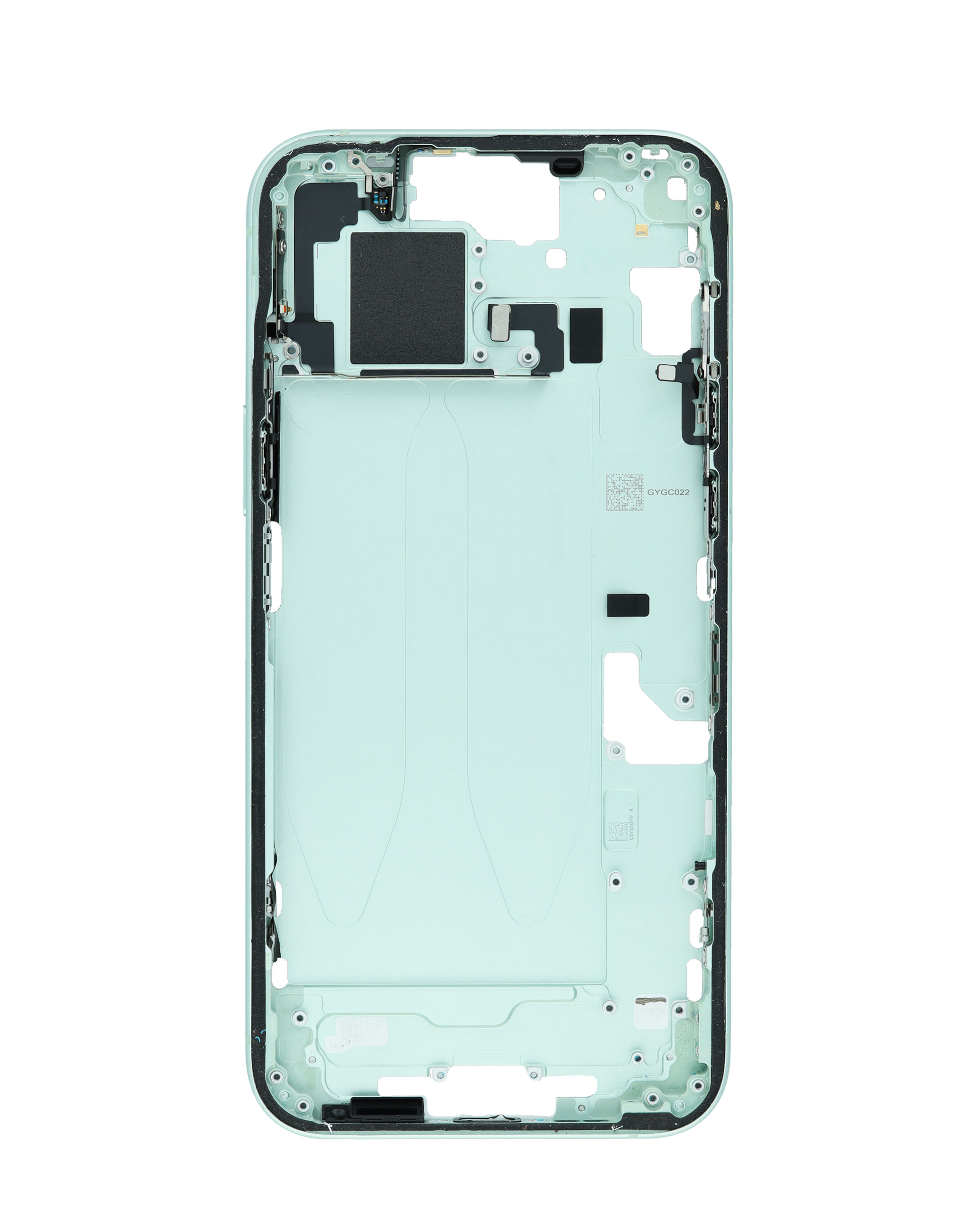Purchase the middle frame with parts for iPhone 15 Plus — green, international version, OEM pull A grade. Middle Frame with Parts for iPhone 15 Plus (GREEN) (International Version) (OEM Pull A Grade)