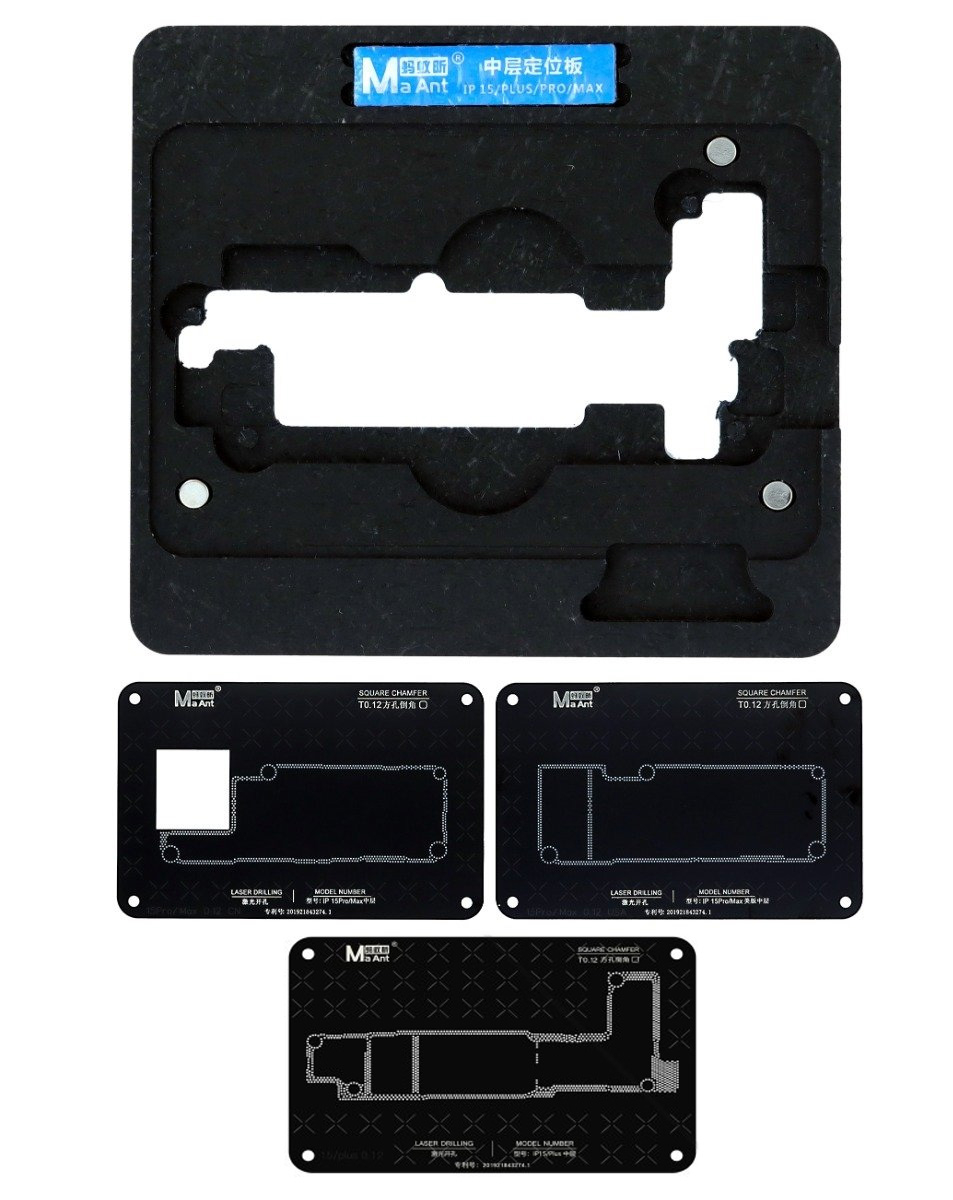 MaAnt 0.12mm Motherboard Middle Layer BGA Reballing Stencil Platform Set for iPhone 15 / 15 PL / 15P / 15 PM