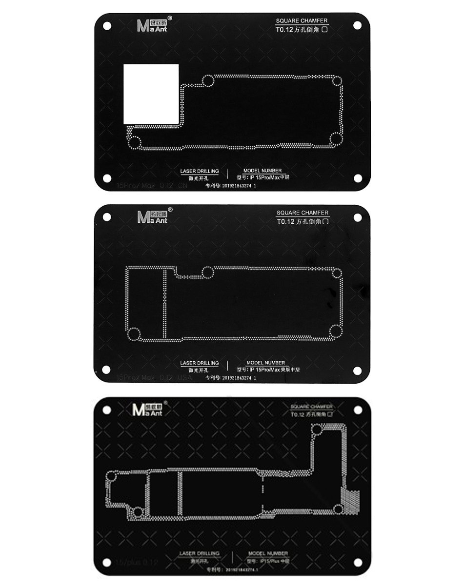 MaAnt 0.12mm Motherboard Middle Layer BGA Reballing Stencil Platform Set for iPhone 15 / 15 PL / 15P / 15 PM MaAnt 0.12mm Motherboard Middle Layer BGA Reballing Stencil Platform Set for iPhone 15 / 15 PL / 15P / 15 PM