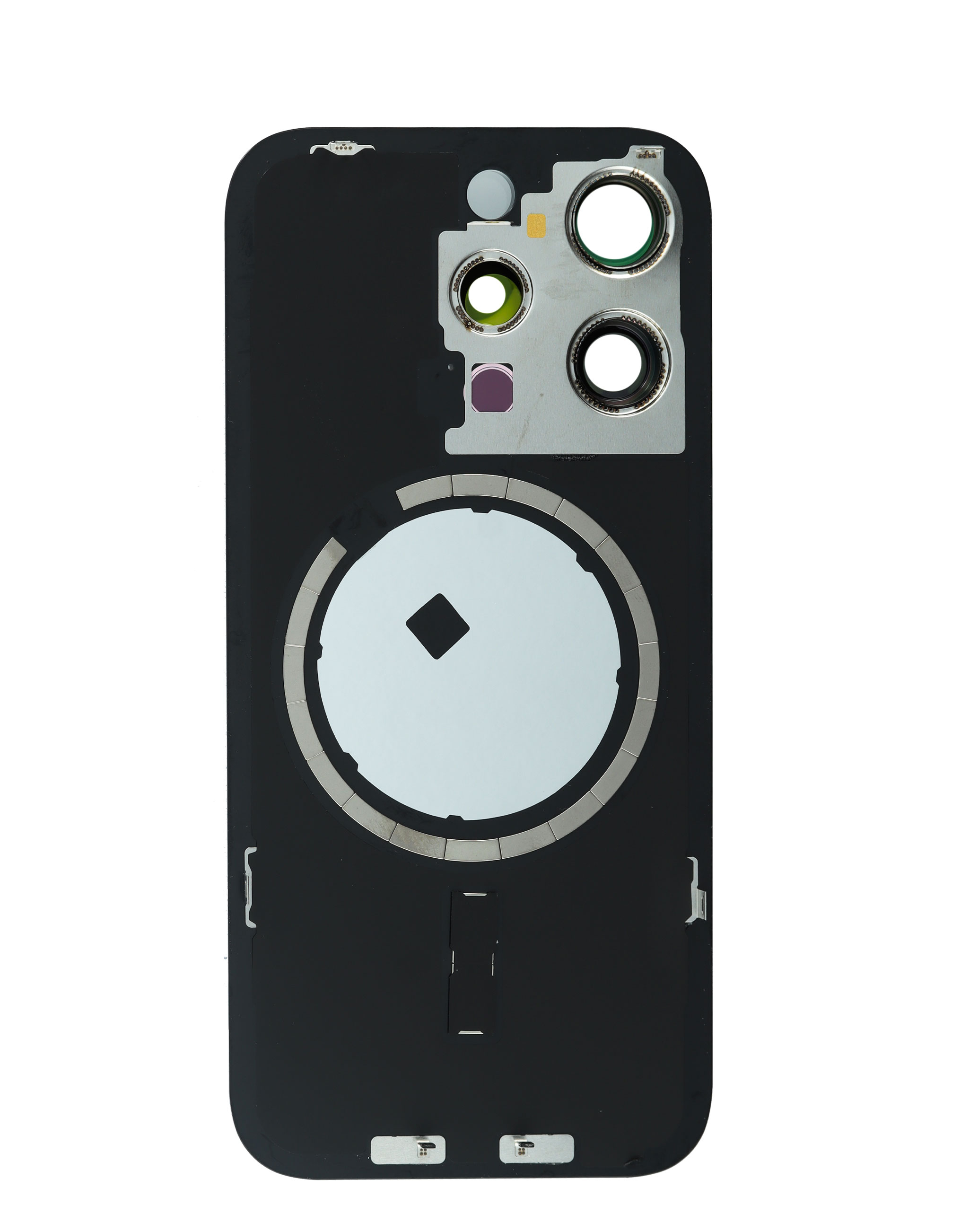 Product Color Badge Shop the Back Glass with Frame and MagSafe Magnet for iPhone 15 Pro, no logo, black titanium.