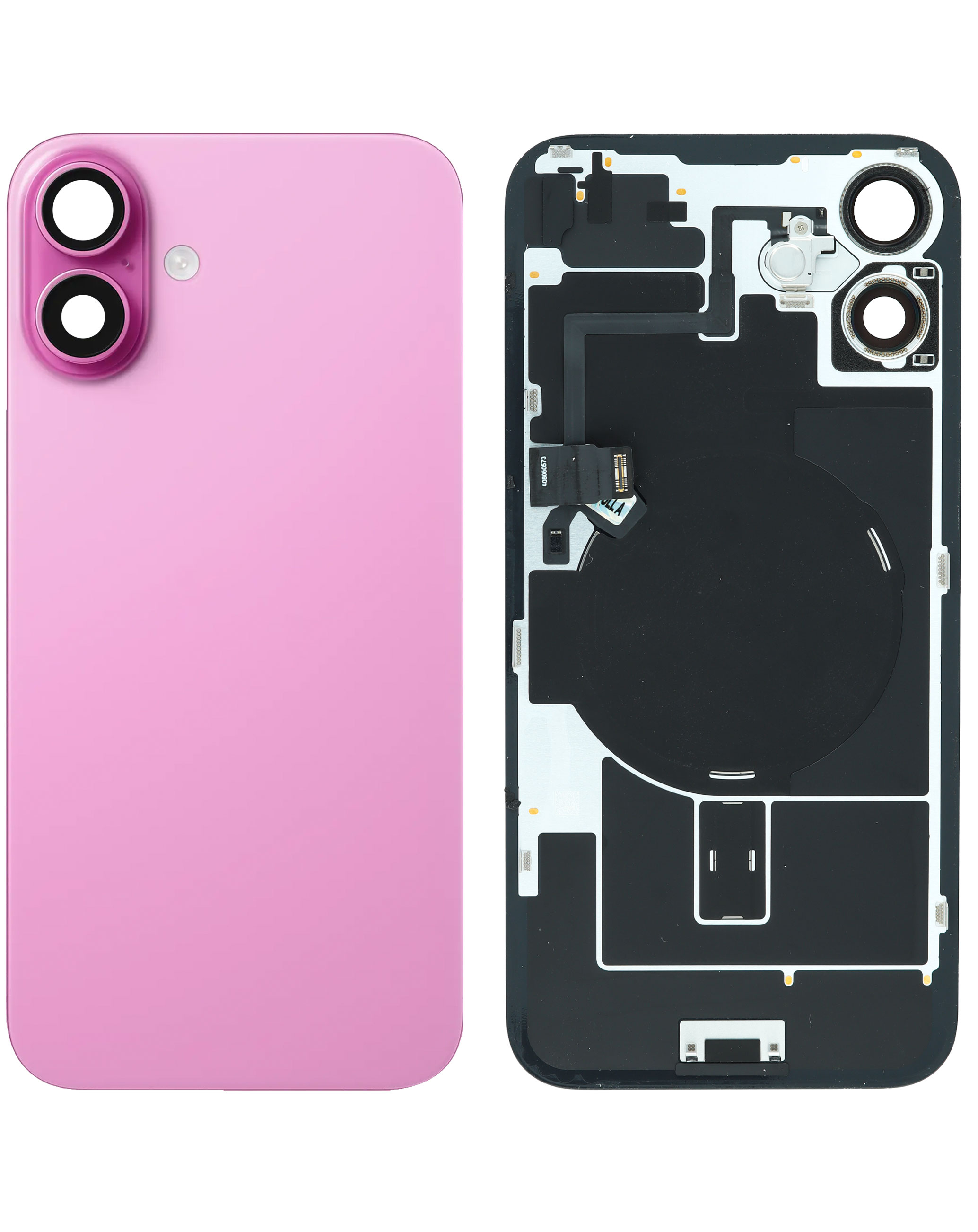 Buy the Back Glass, OEM Pull A Grade, with Frame, Wireless NFC Charging Flex, and MagSafe Magnet for iPhone 16 Plus. Back Glass with MagSafe Magnet & NFC & Flashlight Flex for iPhone 16 Plus (PINK) (OEM Pull A Grade)