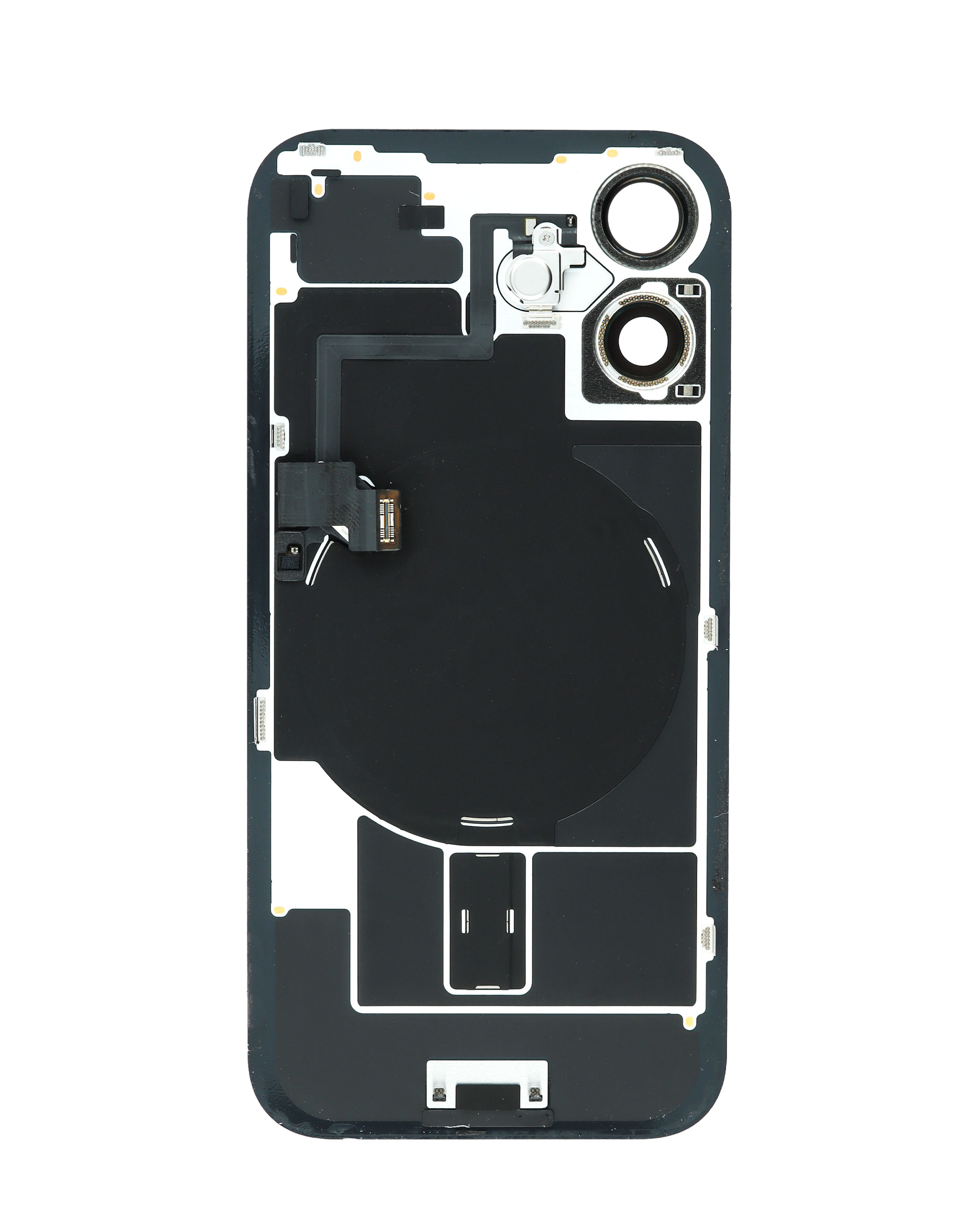 Grab the wholesale deals on the back glass with frame and wireless NFC charging flex and MagSafe magnet for iPhone 16 in black OEM Pull A Grade. Back Glass with MagSafe Magnet & NFC & Flashlight Flex for iPhone 16 (BLACK) (OEM Pull A Grade)
