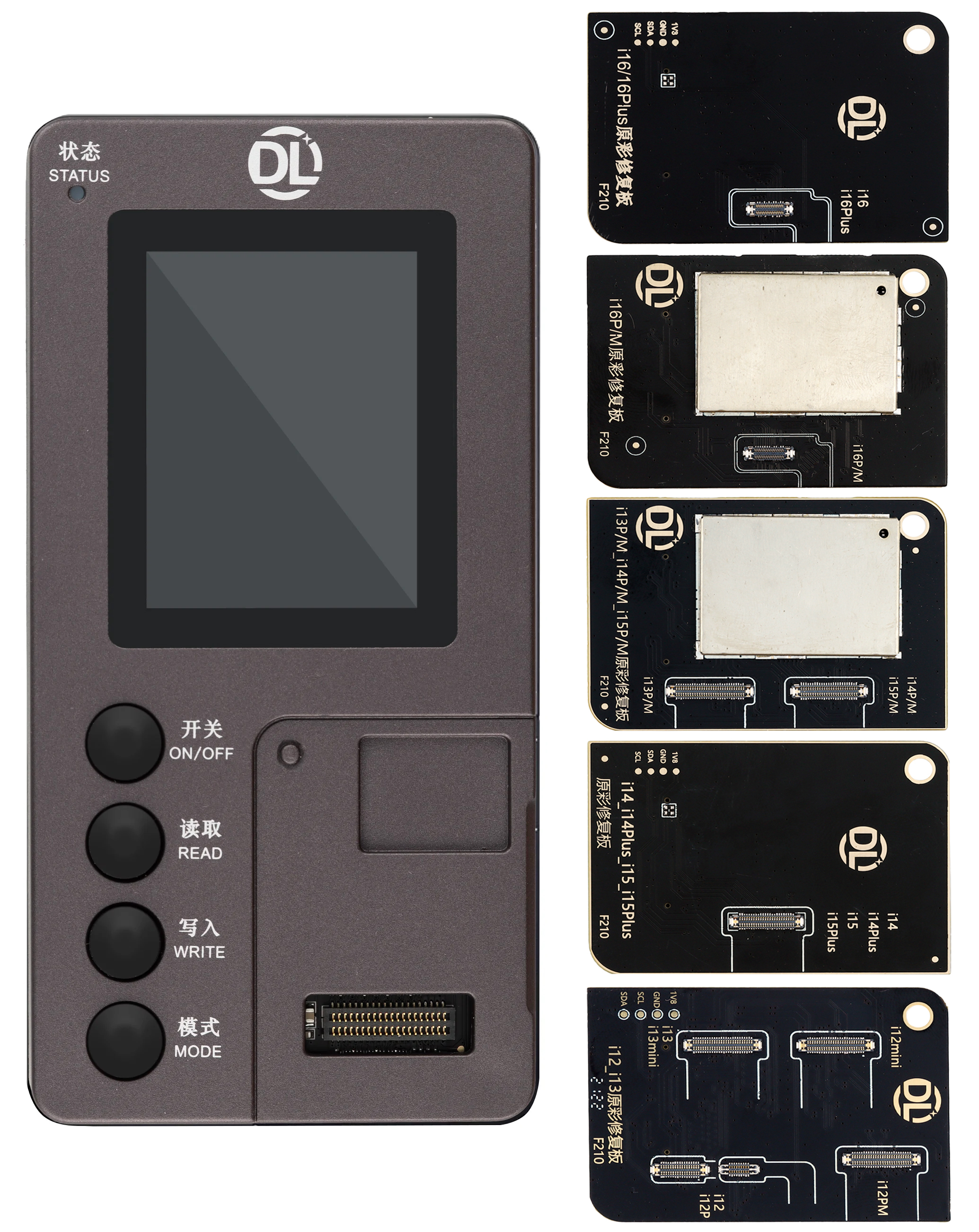 Grab wholesale deals on the DLZ F210 True Tone Restore Programmer Unit with 5 Boards for iPhone 12 to 16 Series.