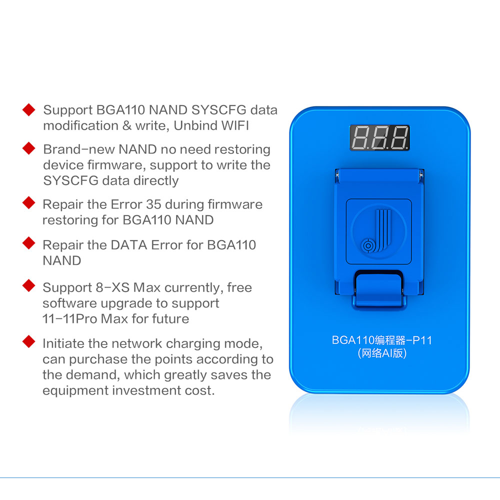 Buy the JC P11F BGA110 NAND Programmer, Network AI Version, for iPhone 8 to 11 Pro Max. Not returnable.