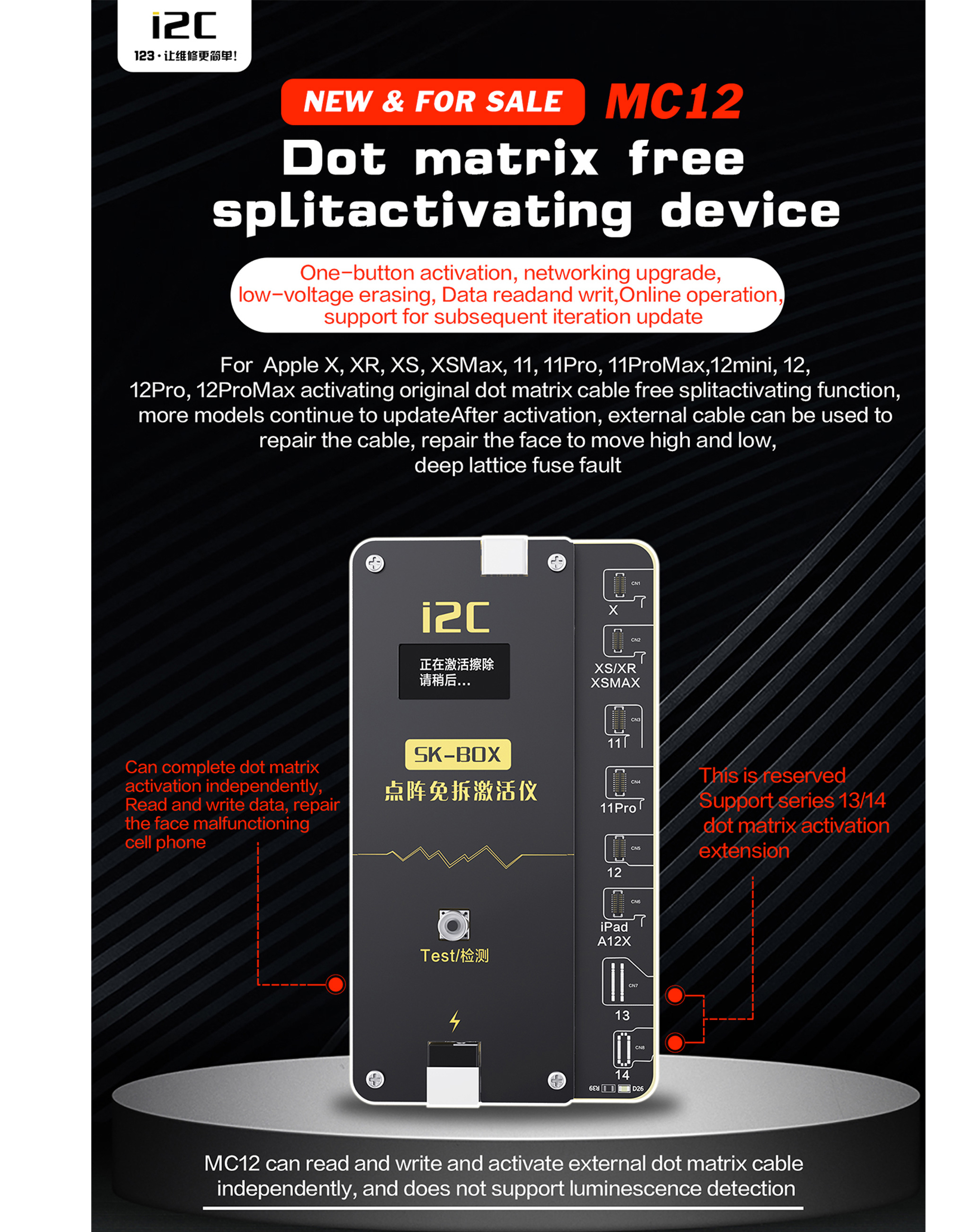 i2C MC12 Dot Matrix Flex Cable Programmer for iPhone X to 14 Series and iPad A12X (Not Returnable)