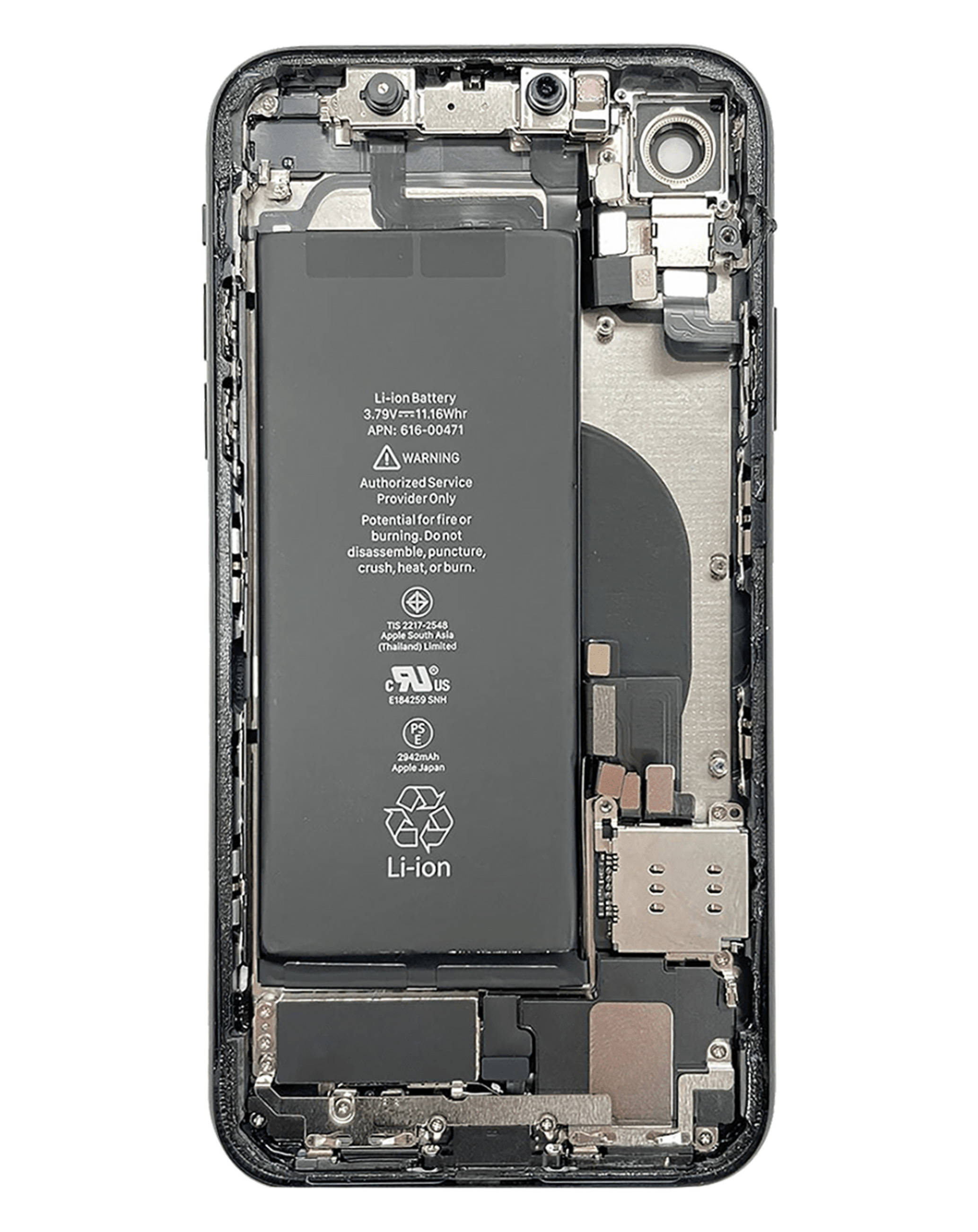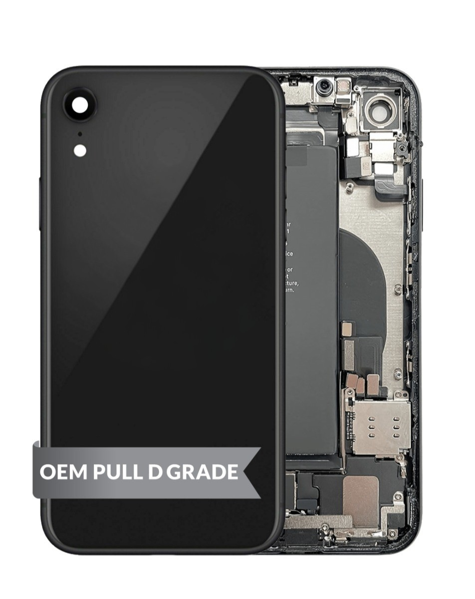 Back Housing Frame with Small Components Pre-Installed for iPhone XR (BLACK) (OEM Pull D Grade) (Only Ground Shipping)