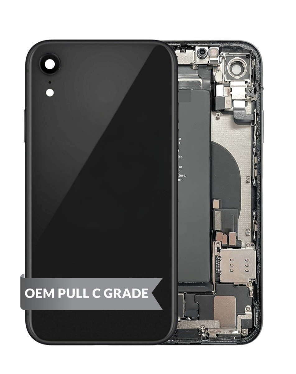 Back Housing Frame with Small Components Pre-Installed for iPhone XR (BLACK) (OEM Pull C Grade) (Only Ground Shipping)