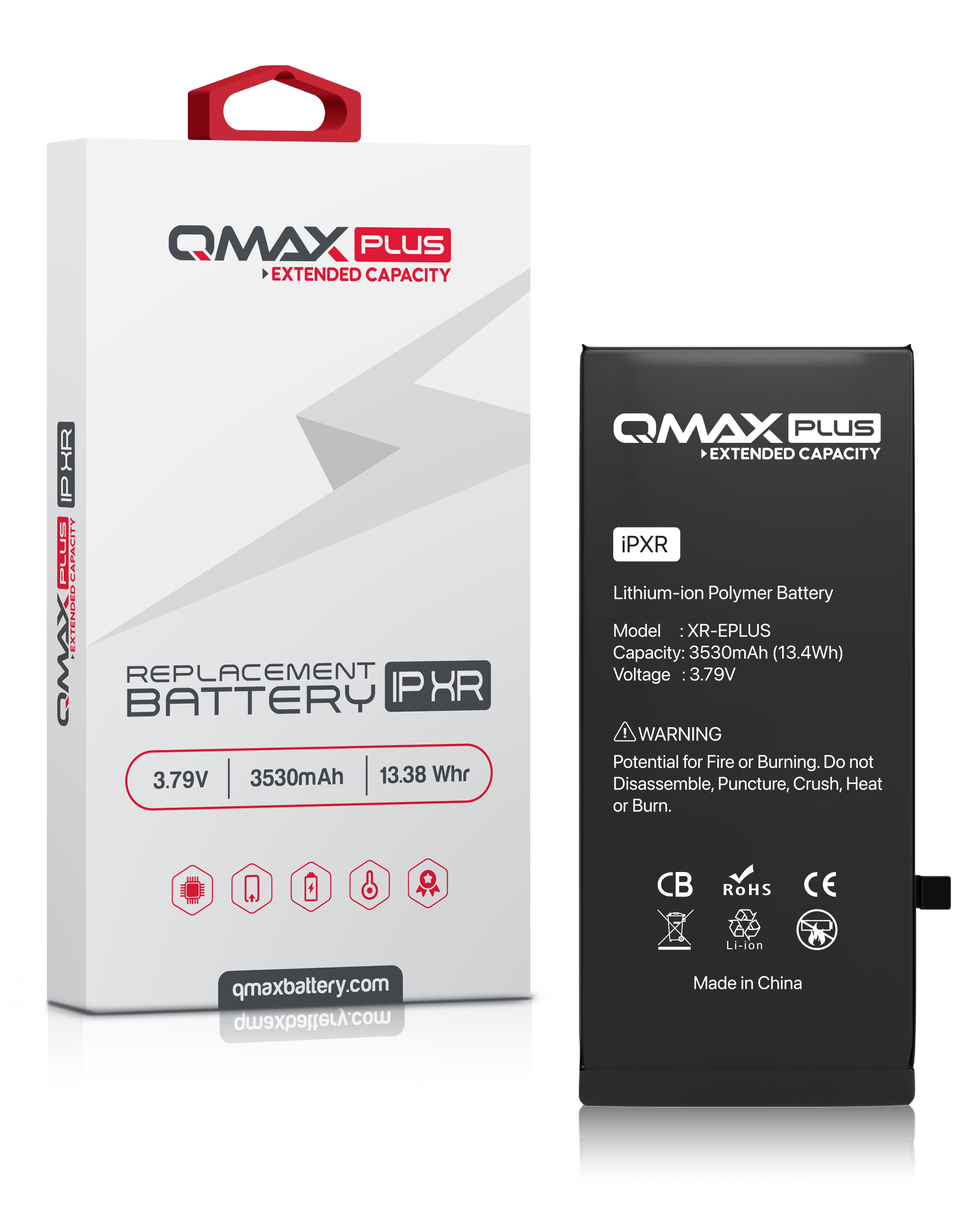 QMAX Plus Extended Capacity Replacement Battery for iPhone XR (3530 mAh) (Only Ground Shipping)