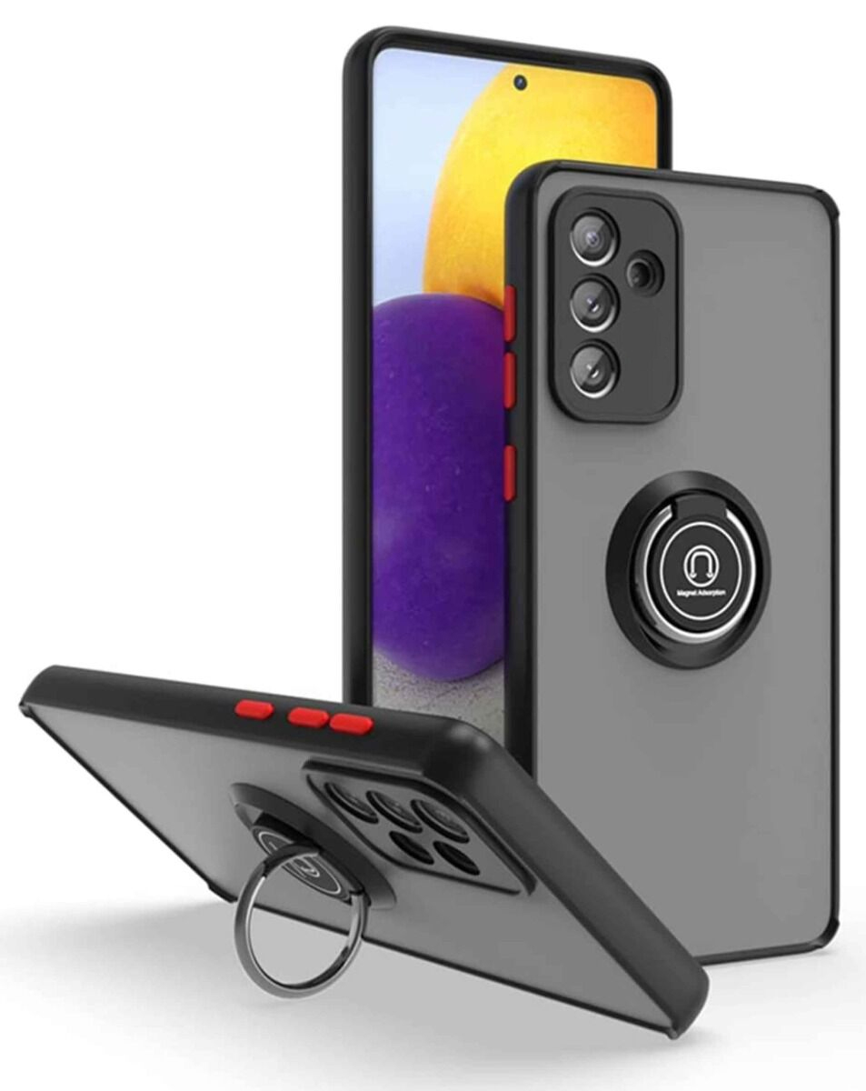 Galaxy A13 5G Hard PC Rear / Soft TPU Colorful Border Case with I - ring Holder - BLACK (Only Ground Shipping)