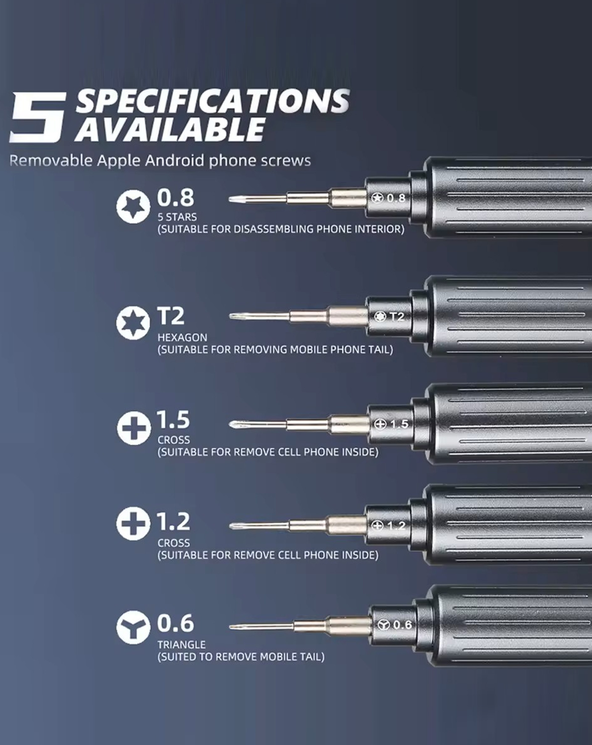 Kaisi Screwdriver Set (T2 / 0.8 / Y0.6 / +1.2 / +1.5 / IP4 (Special for iPhone 17 Series) (Only Ground Shipping)