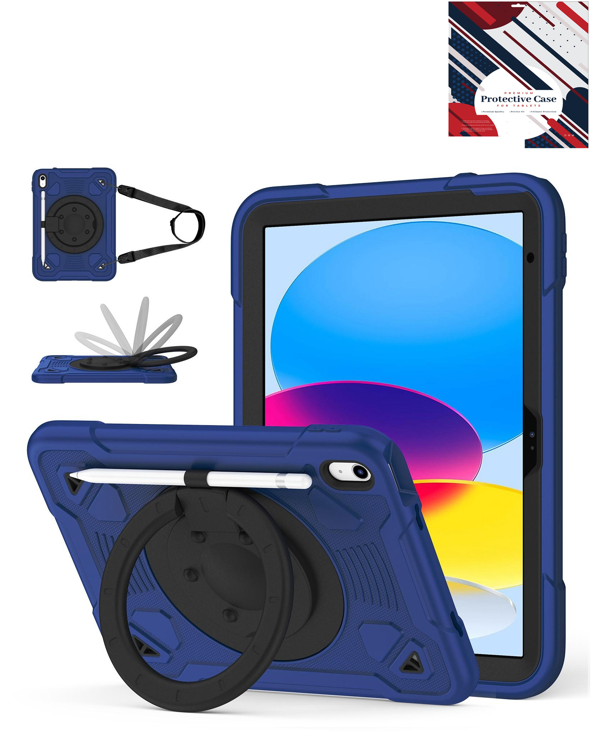 Shockproof Heavy Duty Stand Case with Pen Slot - NAVY BLUE & BLACK for iPad 10 (2022) / iPad 11 (2025) (Only Ground Shipping)