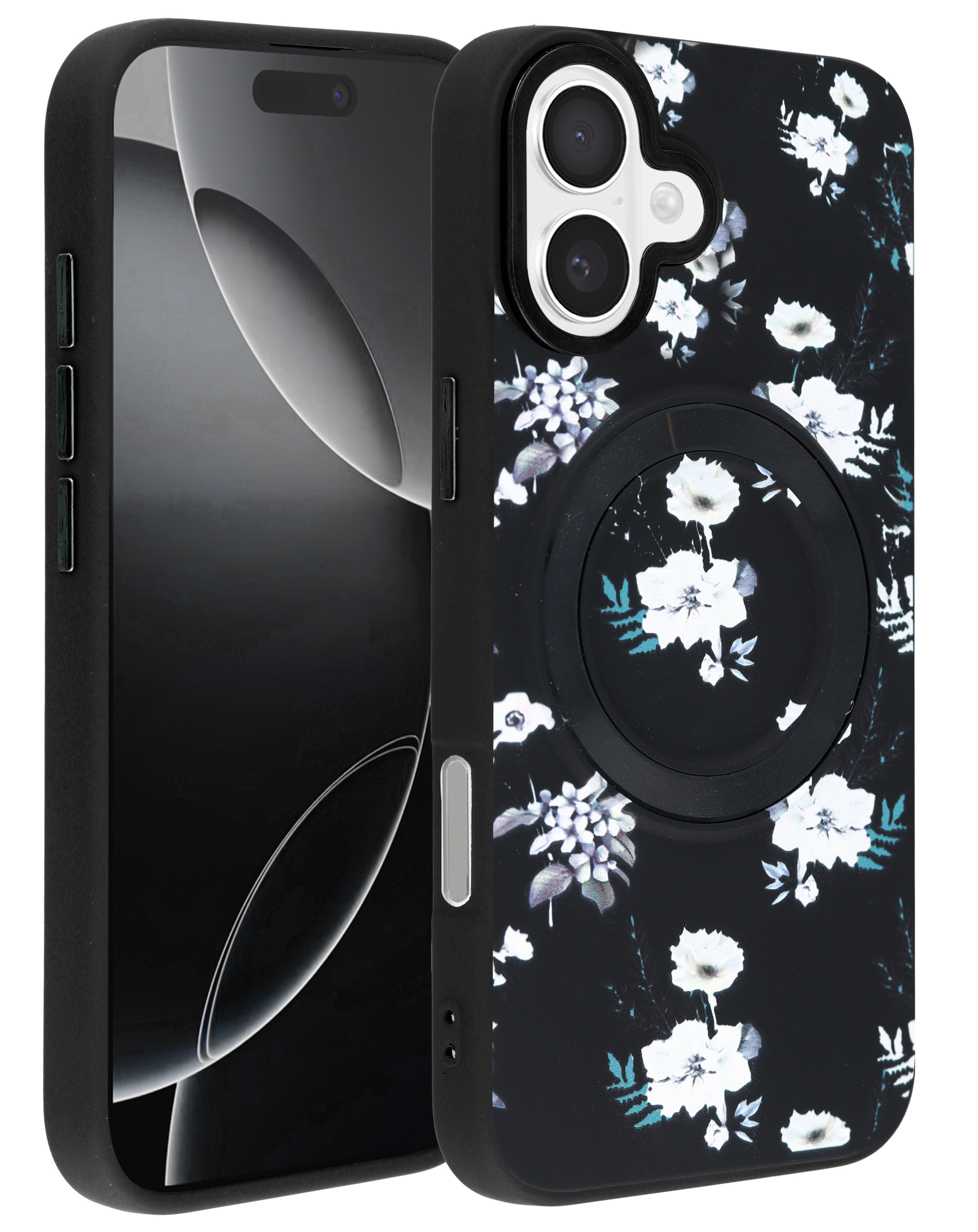 Flower Design Wireless Charging Case - BLACK for iPhone 16 (Only Ground Shipping)