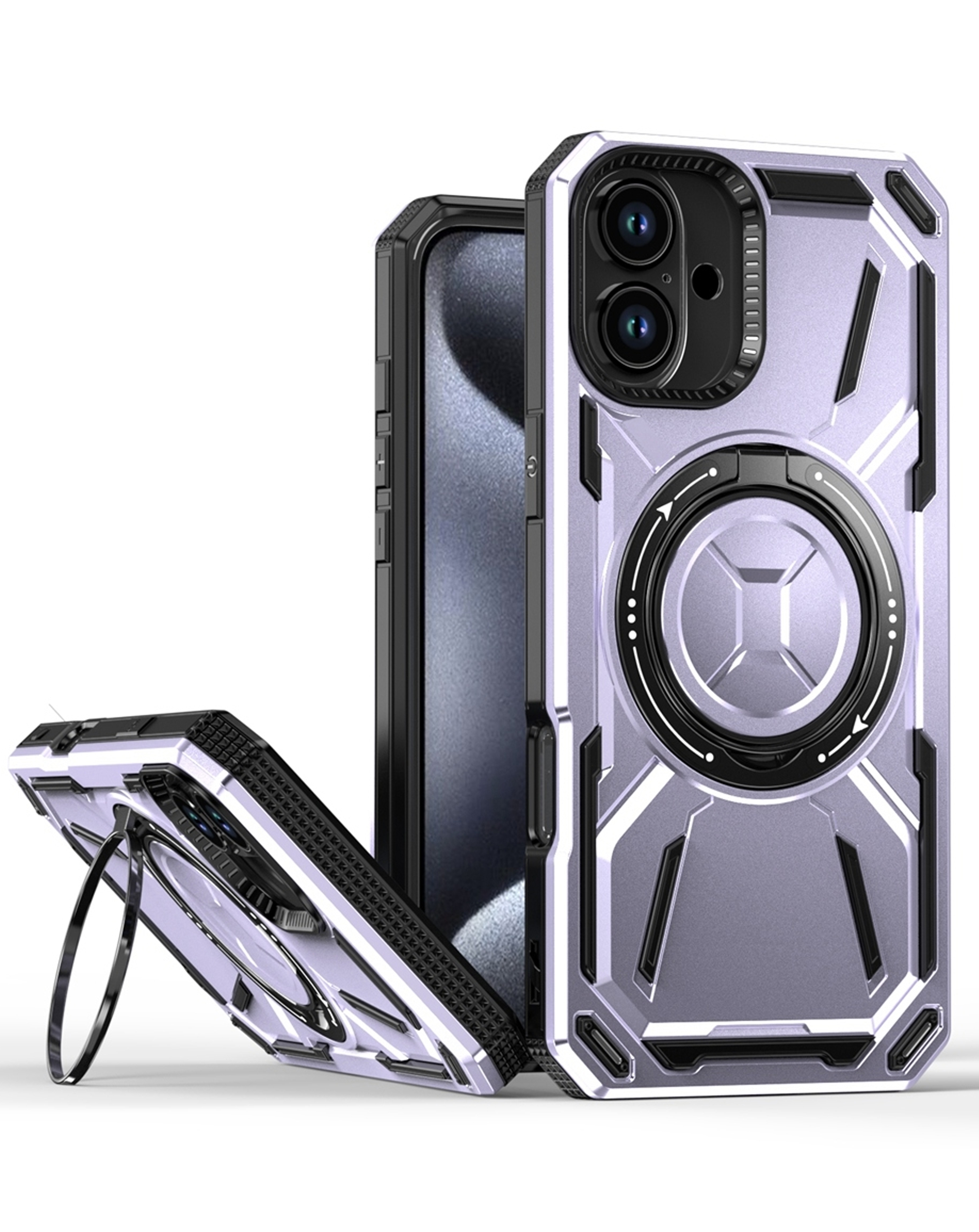 Full-Body Rugged Shockproof Case with Built-in Ring Holder - PURPLE for iPhone 16 (Only Ground Shipping)