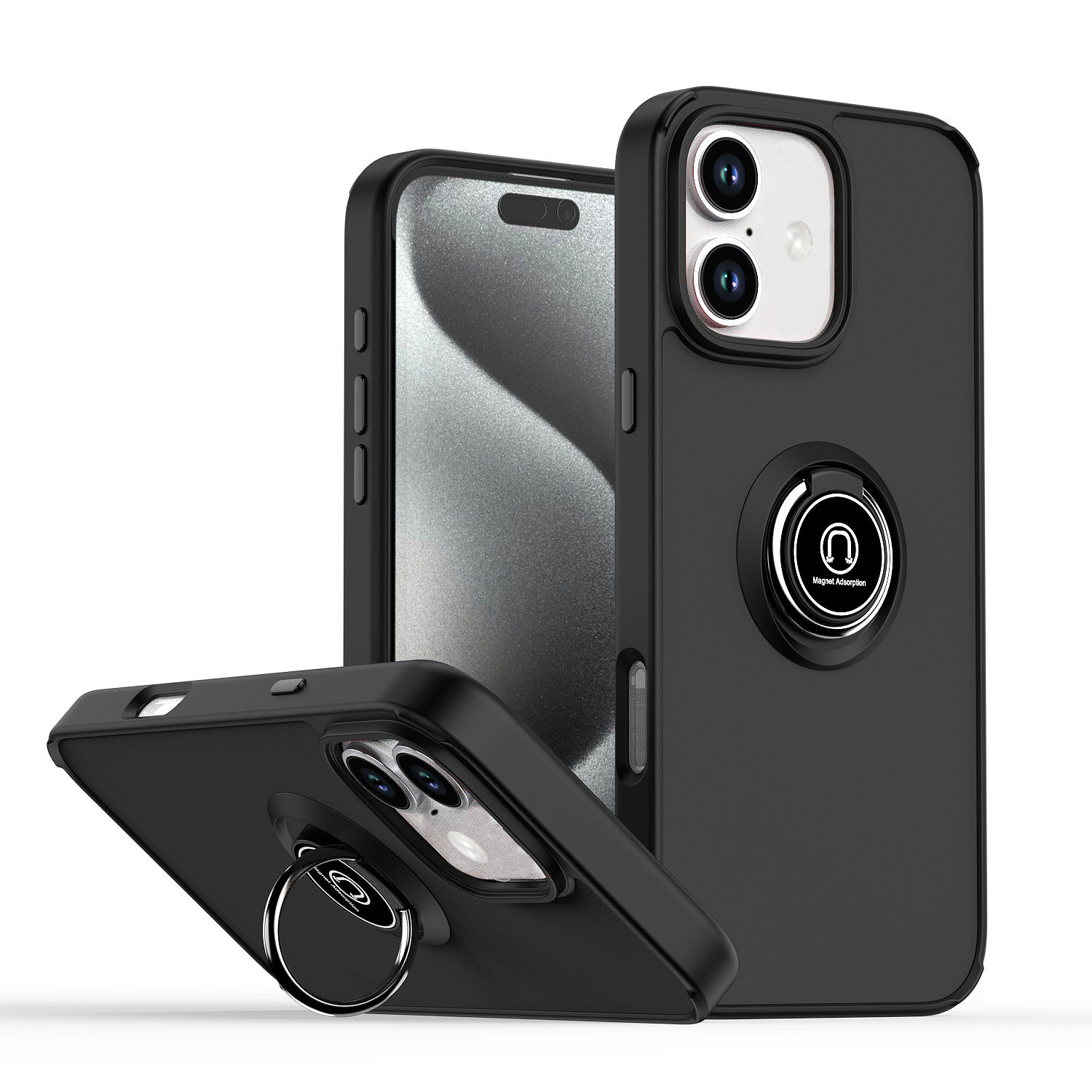 Hard PC Rear / Soft TPU Colorful Border Case with I-ring Holder - BLACK for iPhone 16 (Only Ground Shipping)
