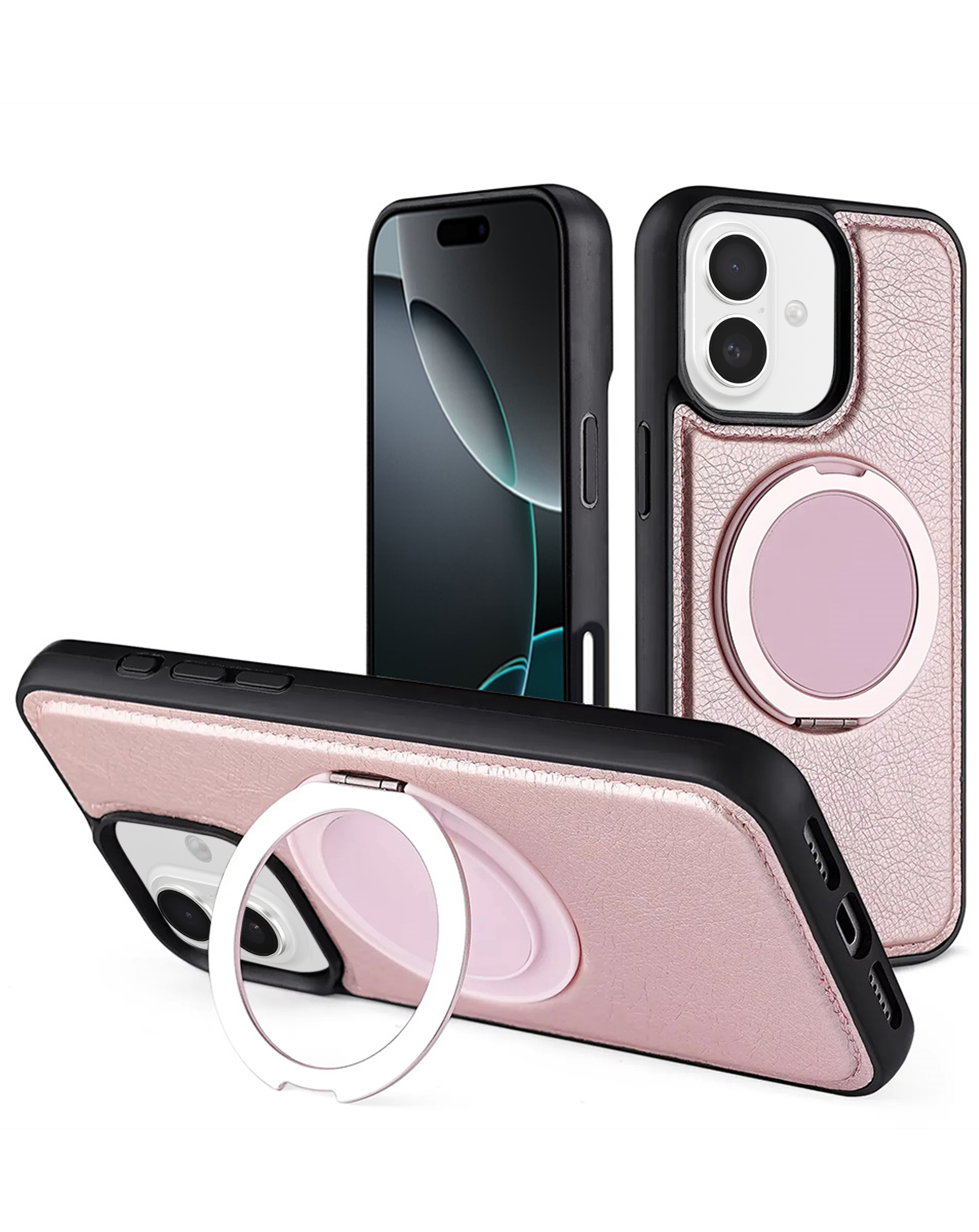 Slim Leather Case with Wireless Charging Kickstand - PINK for iPhone 16 (Only Ground Shipping)