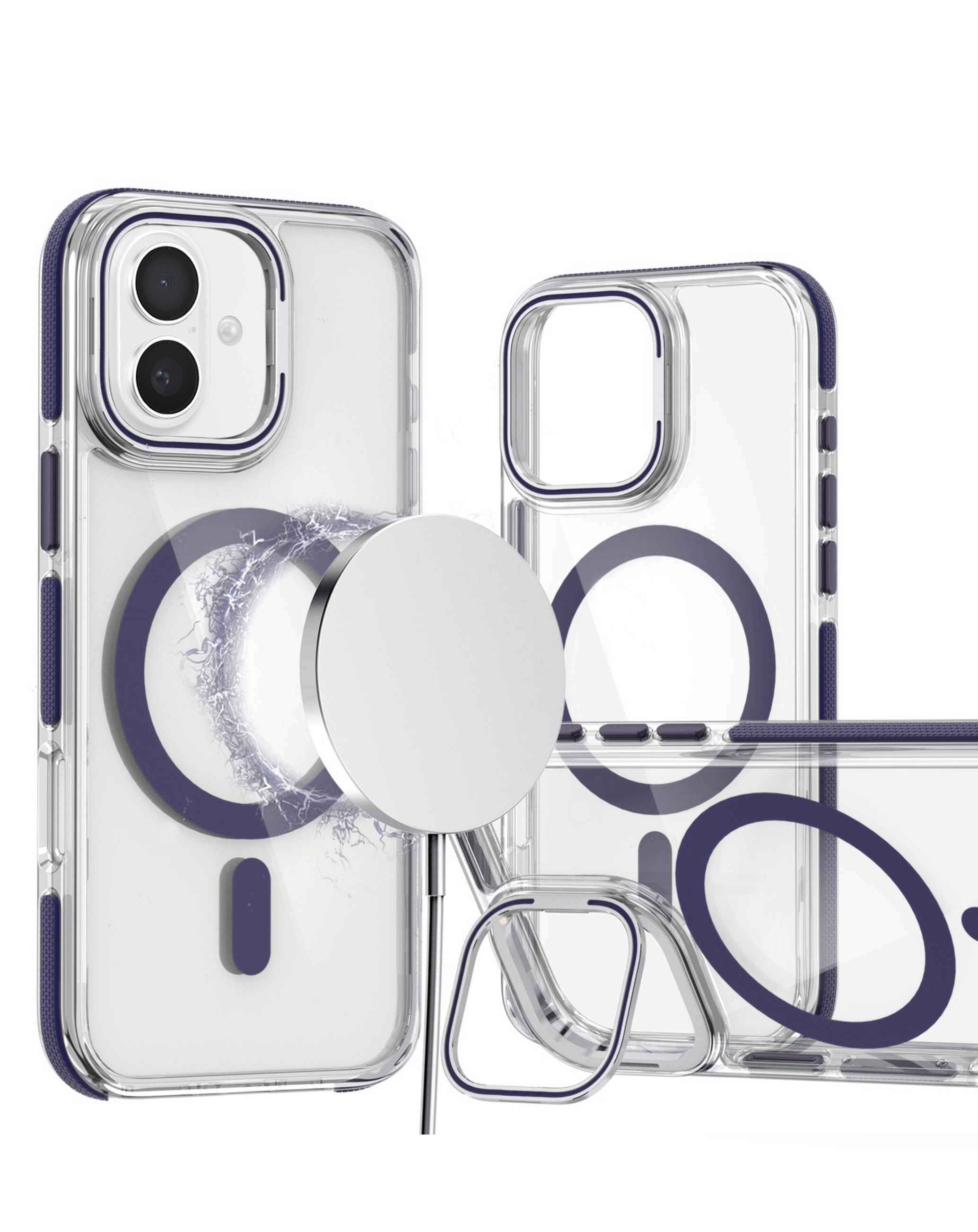 Thin Magnetic Clear Case with Camera Stand Kickstand - PURPLE for iPhone 16 (Only Ground Shipping)