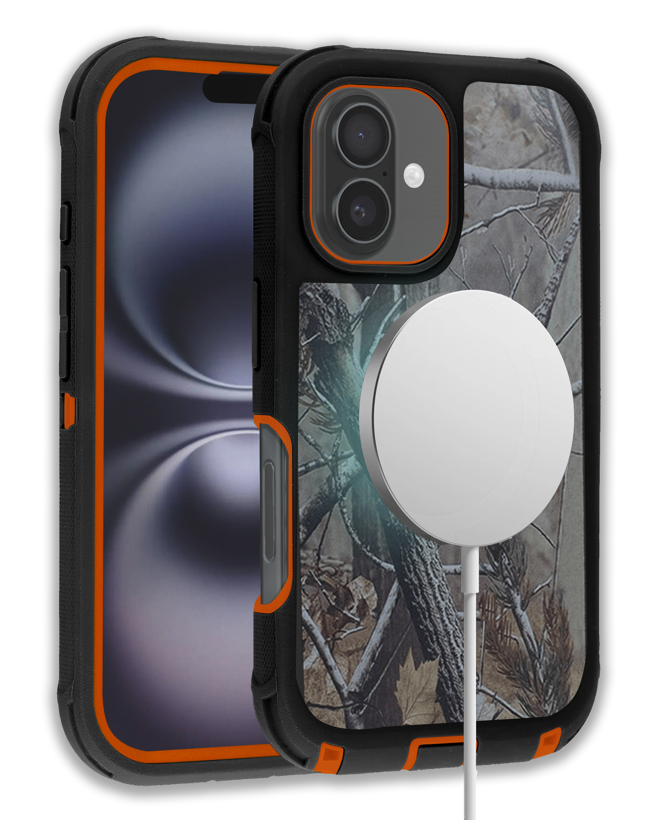 Wireless Charging Heavy Duty Case - CAMO ORANGE for iPhone 16 (Only Ground Shipping)