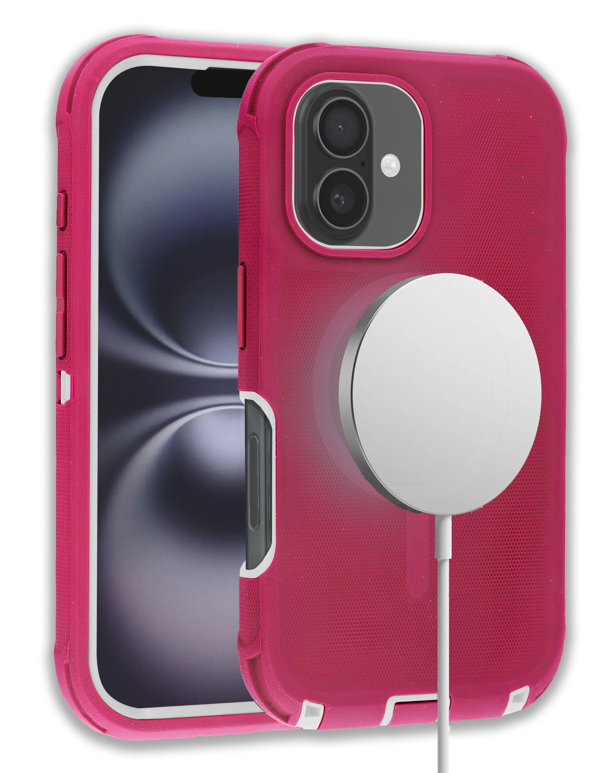 Wireless Charging Heavy Duty Case - PINK & WHITE for iPhone 16 (Only Ground Shipping)