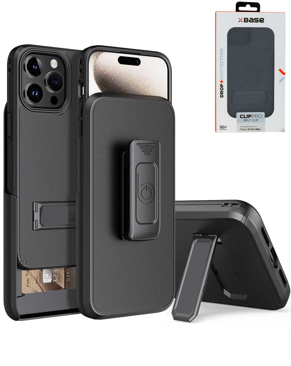 xBase by PowerPeak - Boulder MagSafe Heavy-Duty Co-Molded Rugged Protective Case withBelt Clip Holster - (BLACK) for iPhone 16 (Only Ground Shipping)