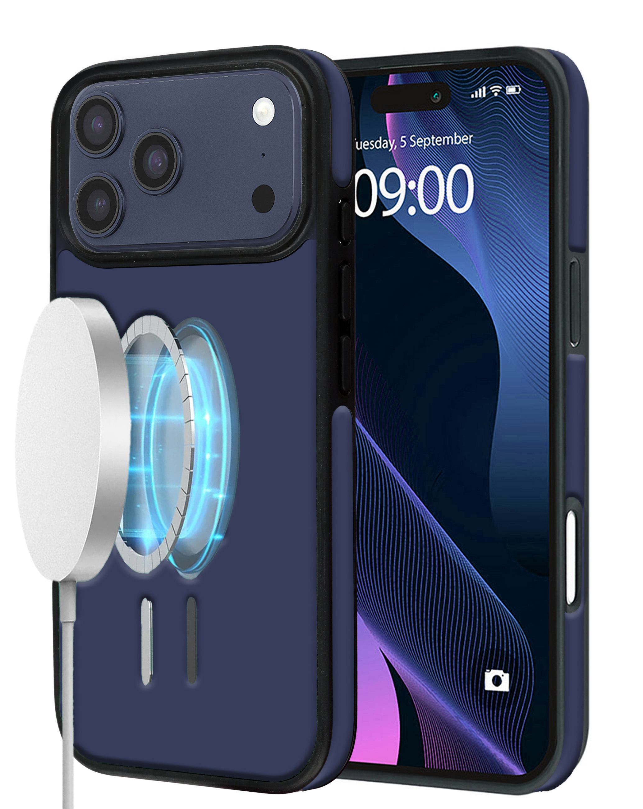 Full Cover Leather Design Wireless Charging Case - DARK BLUE for iPhone 17 Pro (Only Ground Shipping)