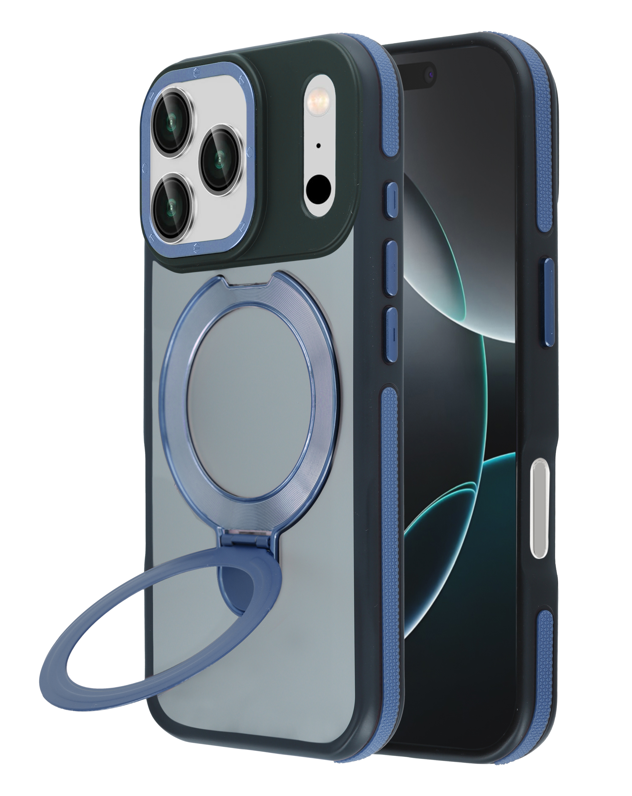 Matte Transparent Case with Wireless Charging Kickstand - BLUE for iPhone 17 Pro (Only Ground Shipping)