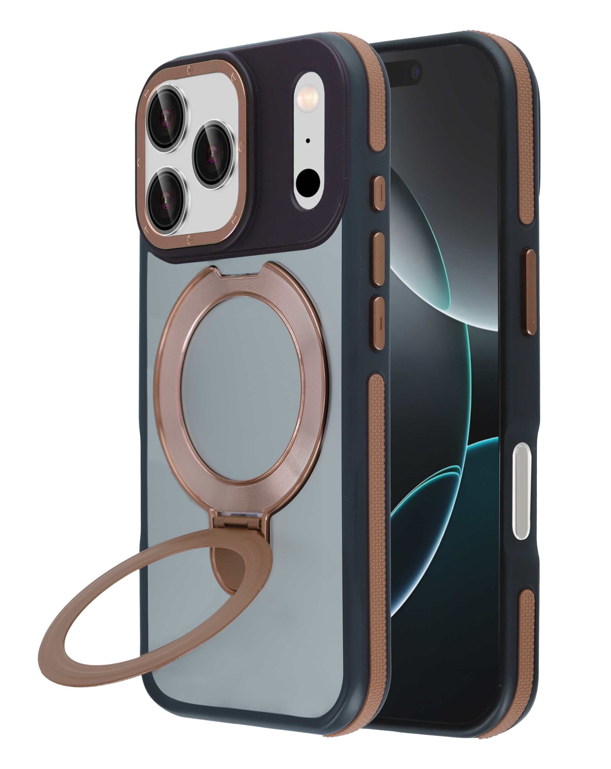Matte Transparent Case with Wireless Charging Kickstand - DARK BROWN for iPhone 17 Pro (Only Ground Shipping)