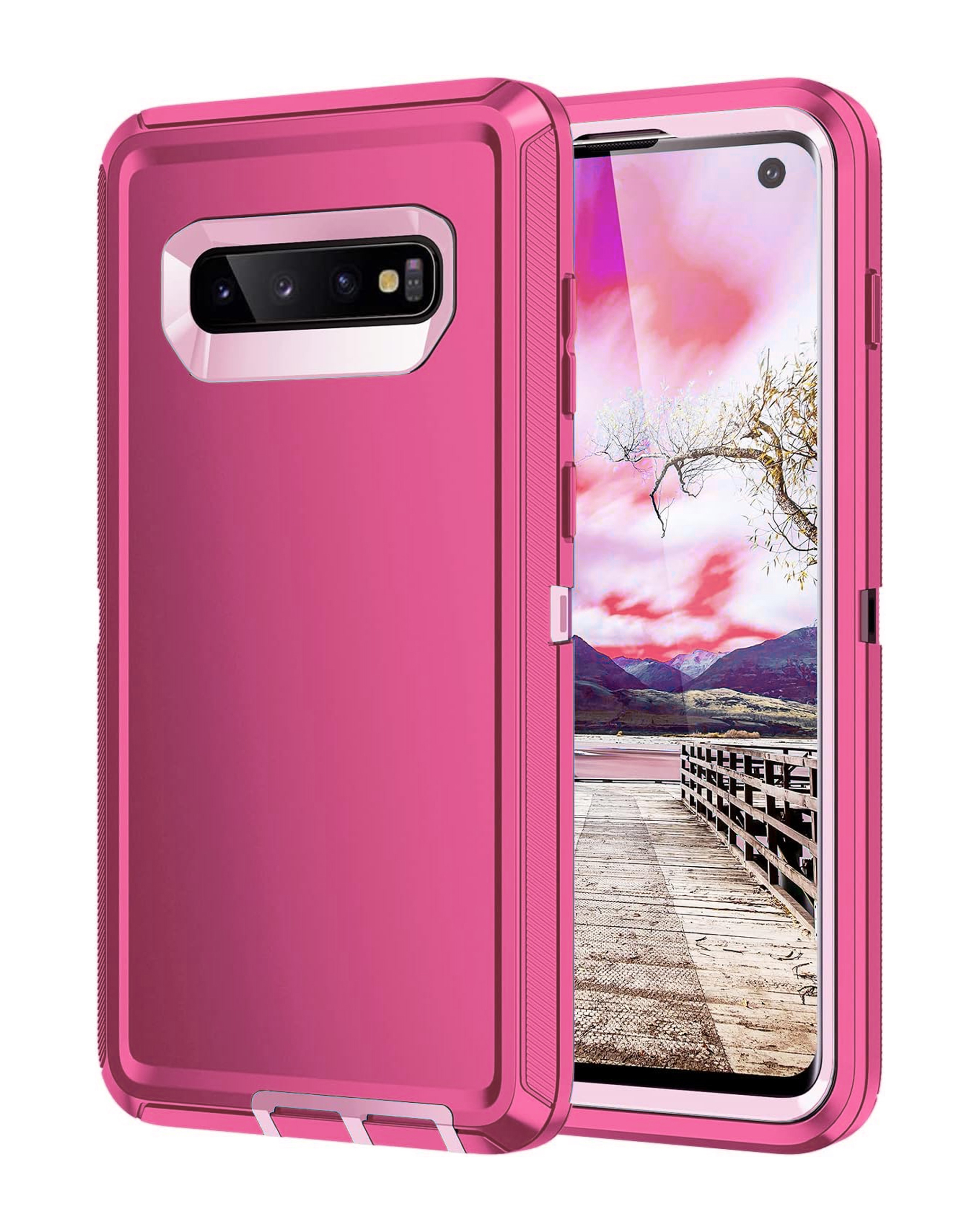 Heavy Duty Case for Galaxy S10E (HOT PINK & WHITE) (Only Ground Shipping)