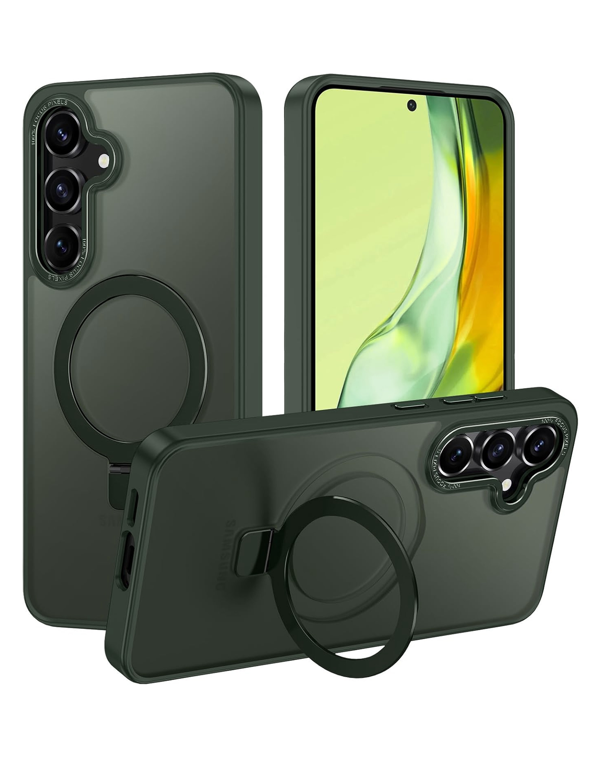 Carbon Wireless Charging Case with Ring Stand - GREEN for Galaxy S24 / S25 (Only Ground Shipping)