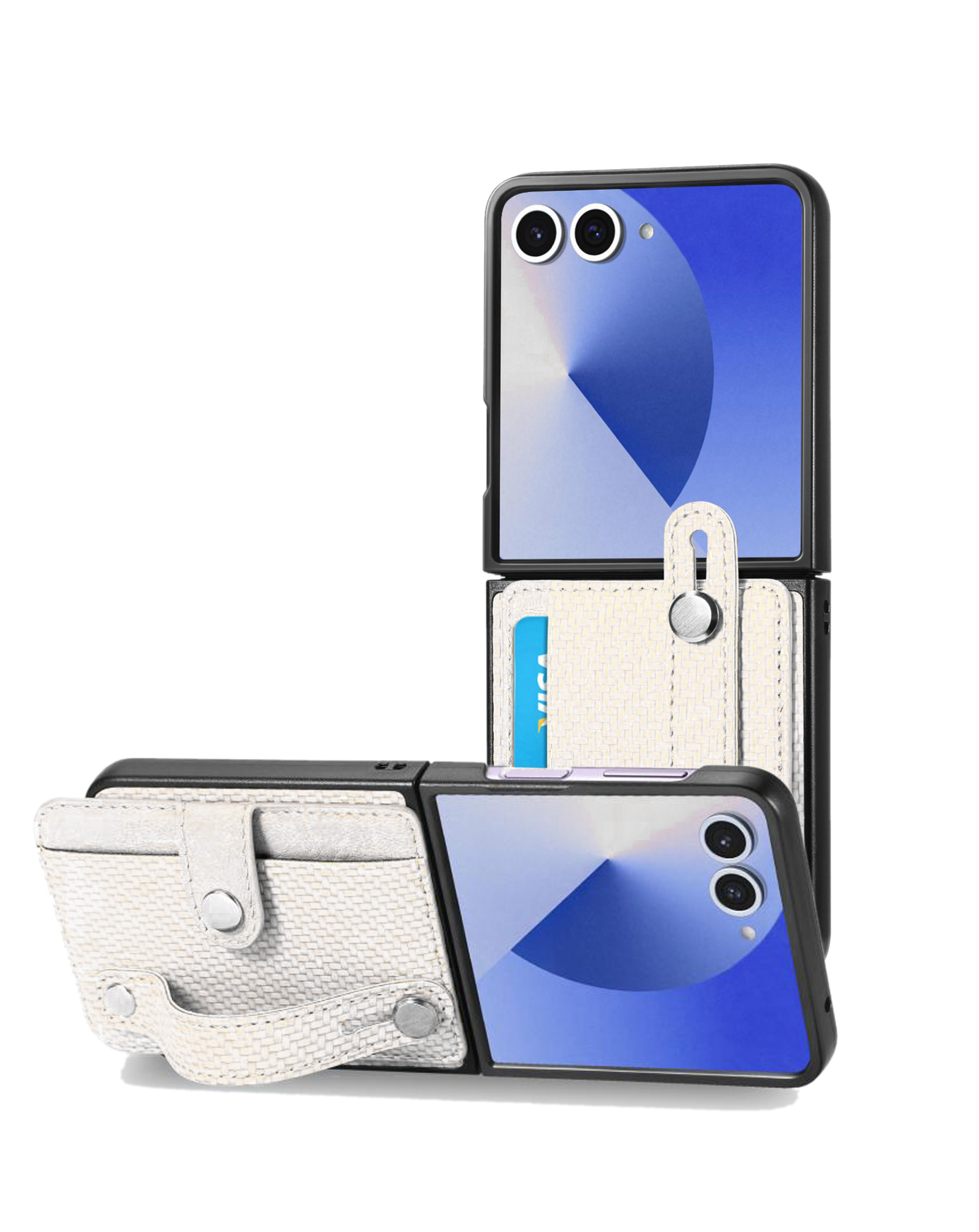 Wallet Case with Credit Card Holder Slot & Wristband -WHITE for Galaxy Z Flip 7 (Only Ground Shipping)