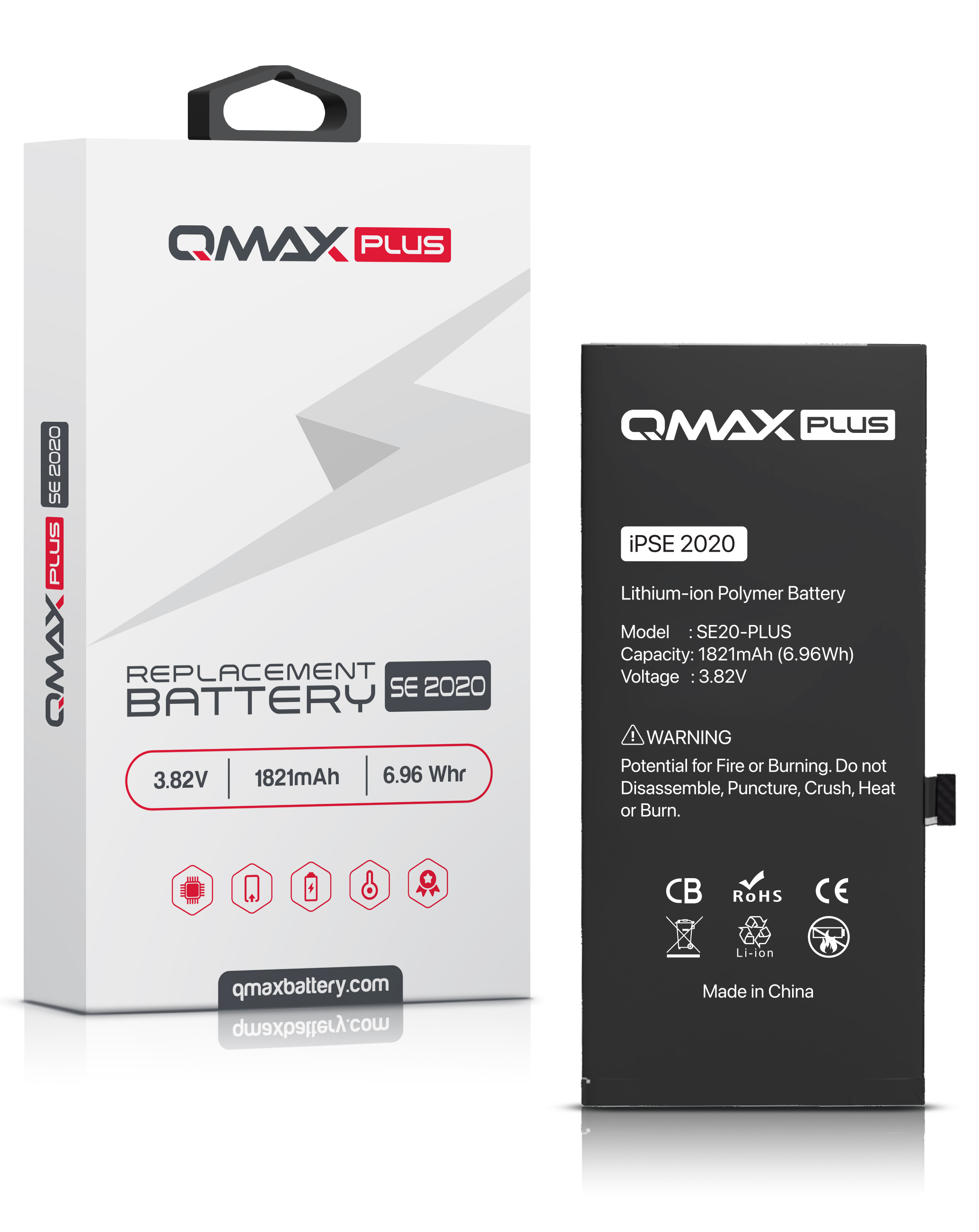 Stock up on the QMAX Plus replacement battery for iPhone SE 2020 with 1821 mAh.