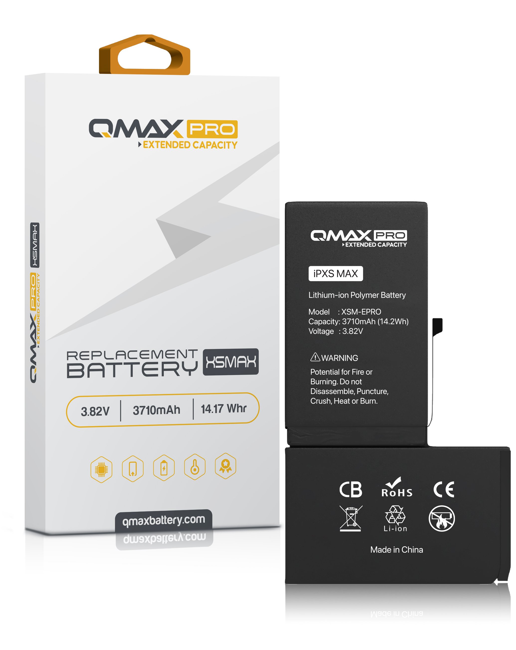 Purchase the QMAX Pro extended capacity replacement battery for iPhone XS Max with 3710 mAh.