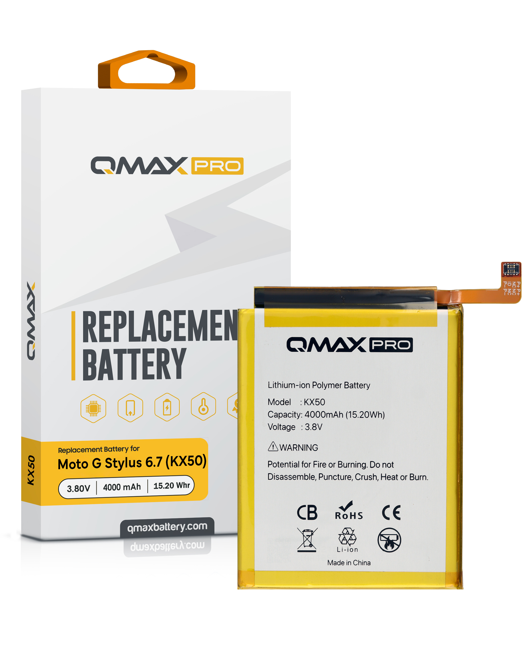 QMAX Pro Replacement Battery for Motorola G Stylus 6.4" (XT2043 / 2020) / G Stylus 6.8" (XT2115 / 2021) (4000 mAh) (KX50) (Only Ground Shipping)
