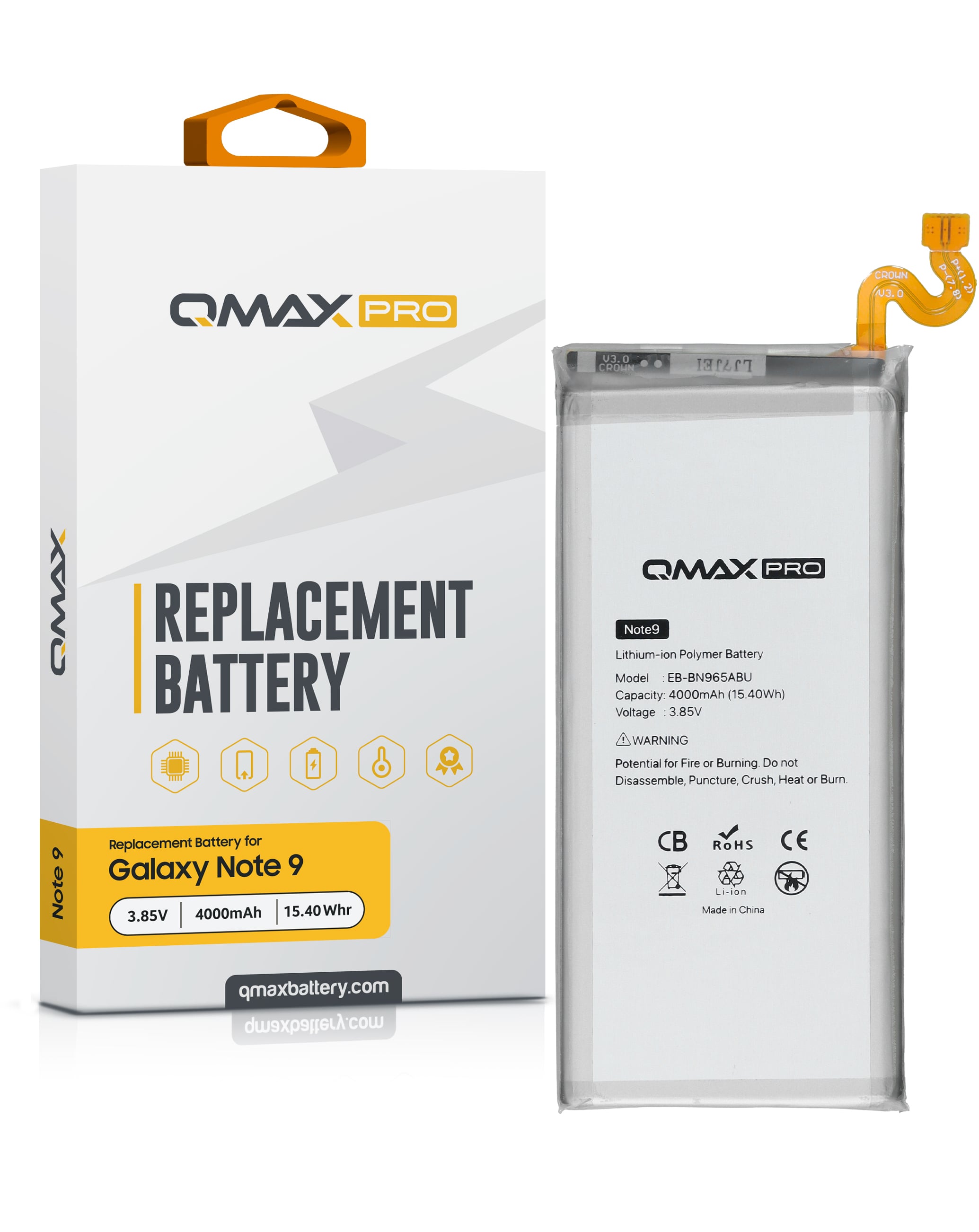QMAX Pro Replacement Battery for Galaxy Note 9 (4000 mAh) (EB-BN965ABU) (Only Ground Shipping)