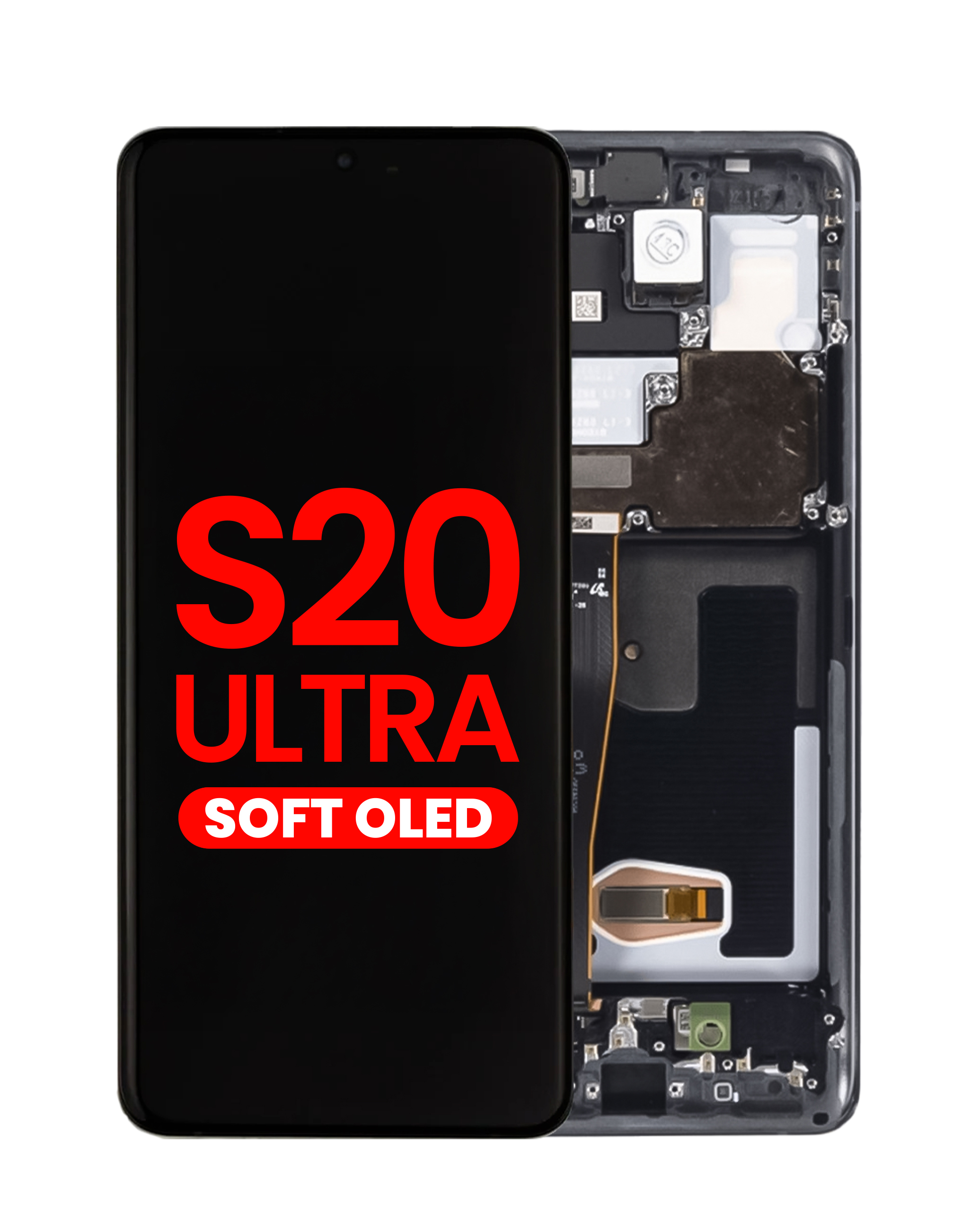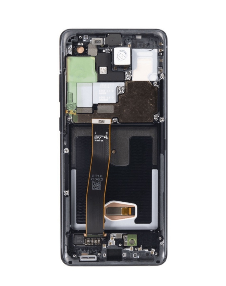 Purchase the OLED Assembly with Frame for Galaxy S20 Ultra G988, Aftermarket OLED, in Cosmic Black. OLED Assembly with Frame for Galaxy S20 Ultra (G988) (Aftermarket OLED) (COSMIC BLACK)