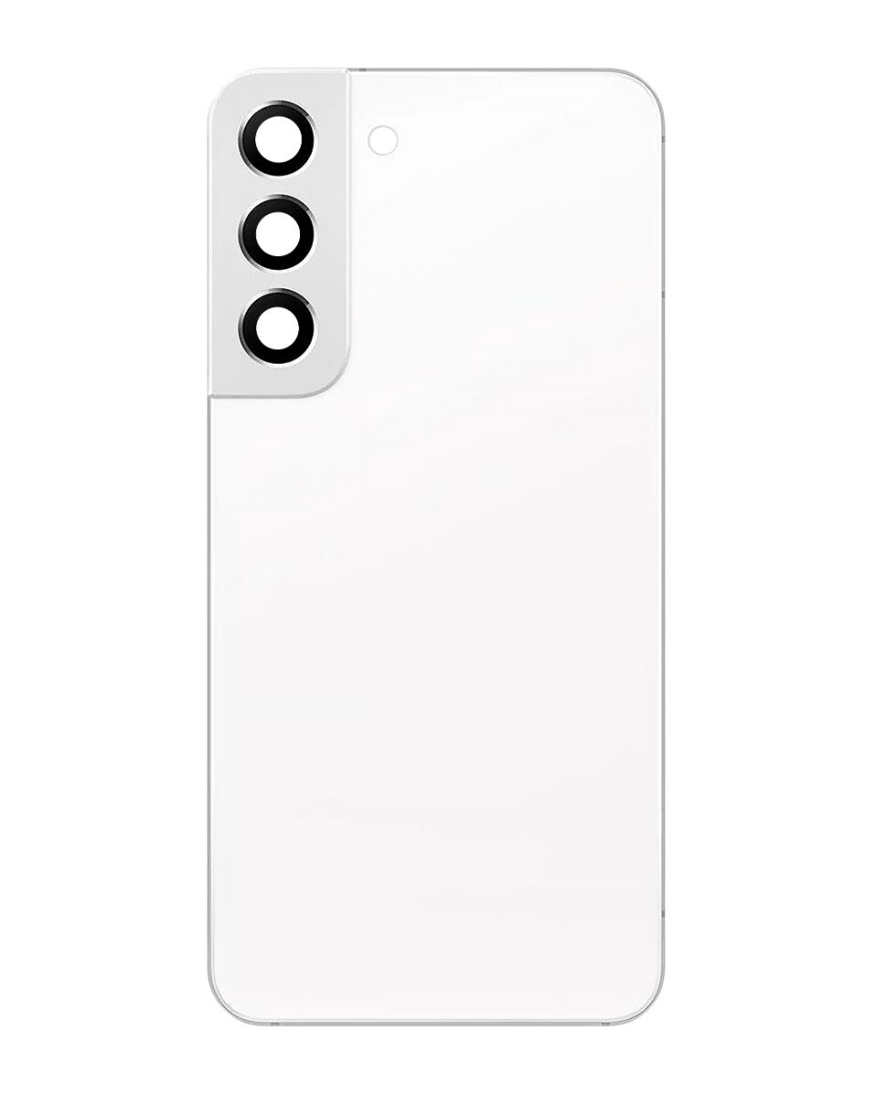 Stock up on the Back Glass with Camera Lens and Adhesive for the Galaxy S22 in Phantom White, no logo.