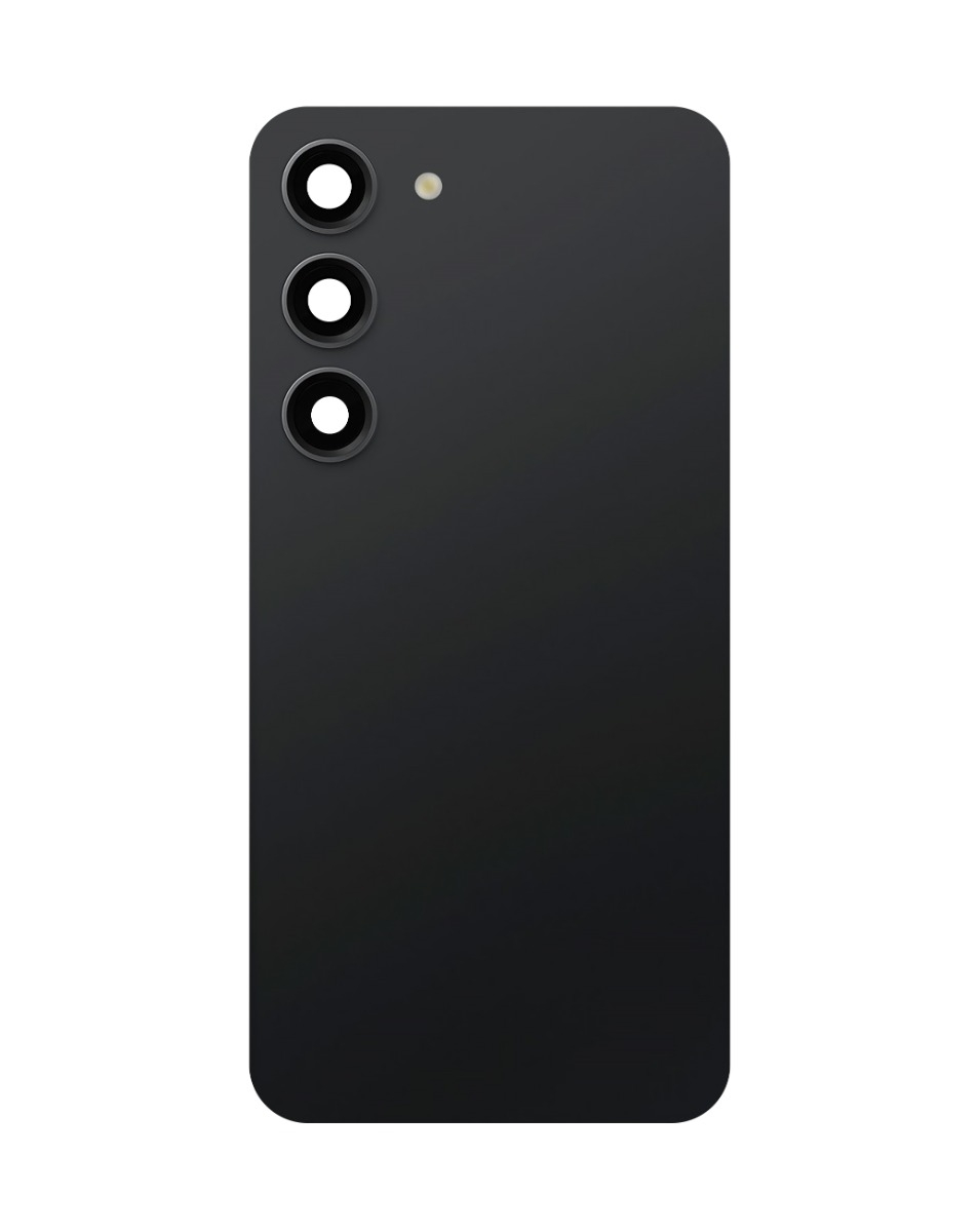 Shop the back glass with camera lens and adhesive for Galaxy S23, no logo, in phantom black. Back Glass with Camera Lens and Adhesive for Galaxy S23 (NO LOGO) (PHANTOM BLACK)