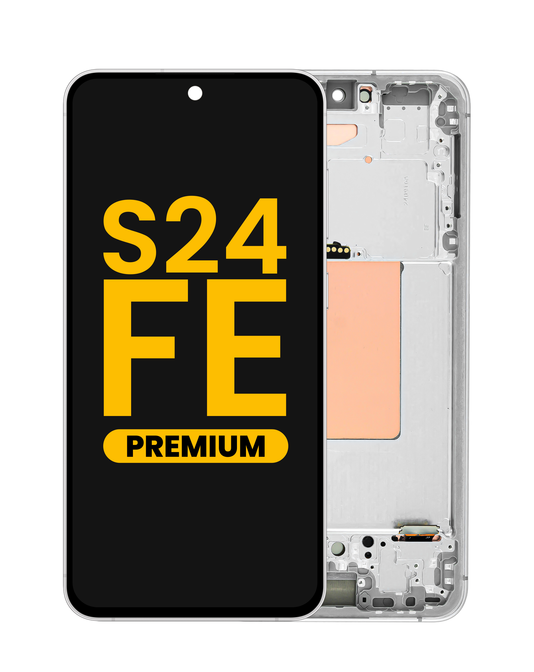 Stock up on the OLED assembly with frame for Galaxy S24 FE 5G S721 in gray, premium. OLED Assembly with Frame for Galaxy S24 FE 5G (S721) (GRAY) (Premium)