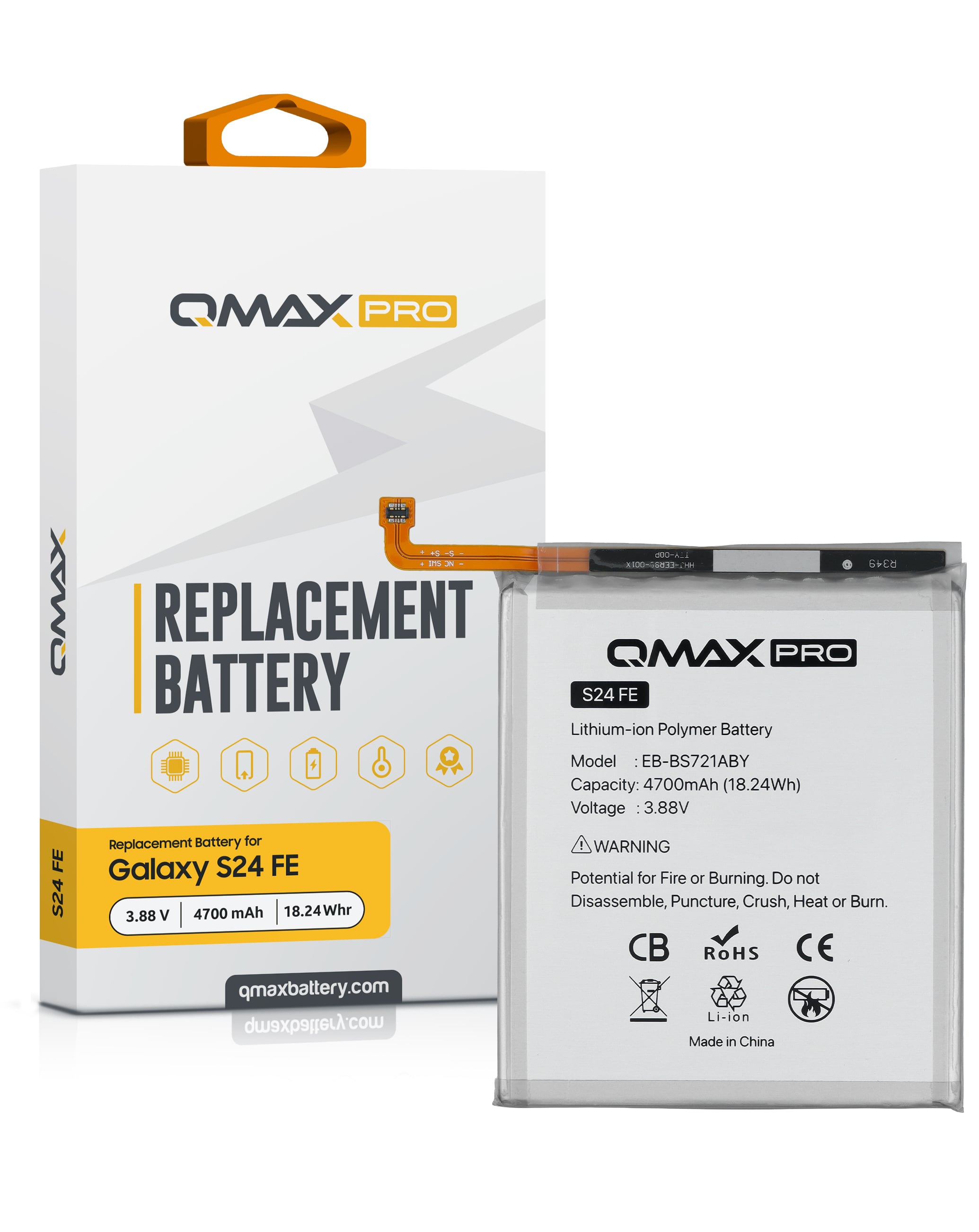 QMAX Pro Replacement Battery for Galaxy S24 FE (4700 mAh) (EB-BS721ABY) (Only Ground Shipping)