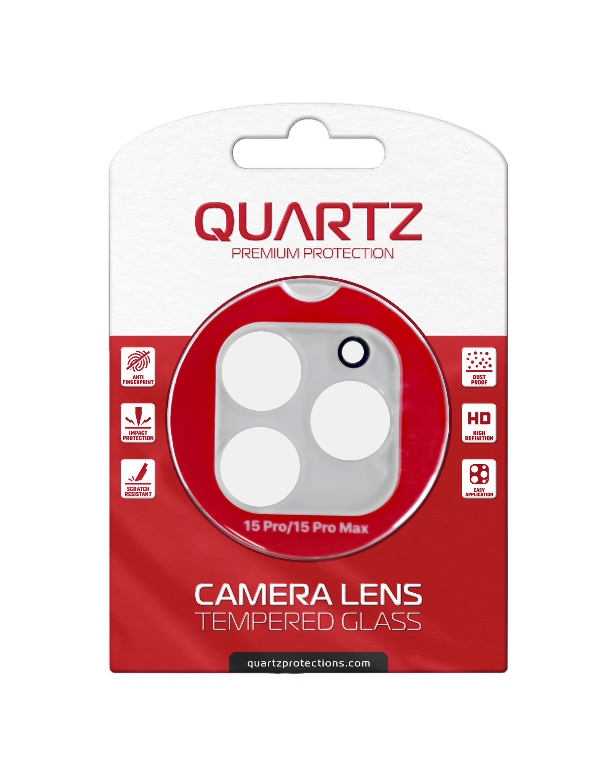 Shop the QUARTZ clear back camera tempered glass for iPhone 15 Pro and 15 Pro Max.
