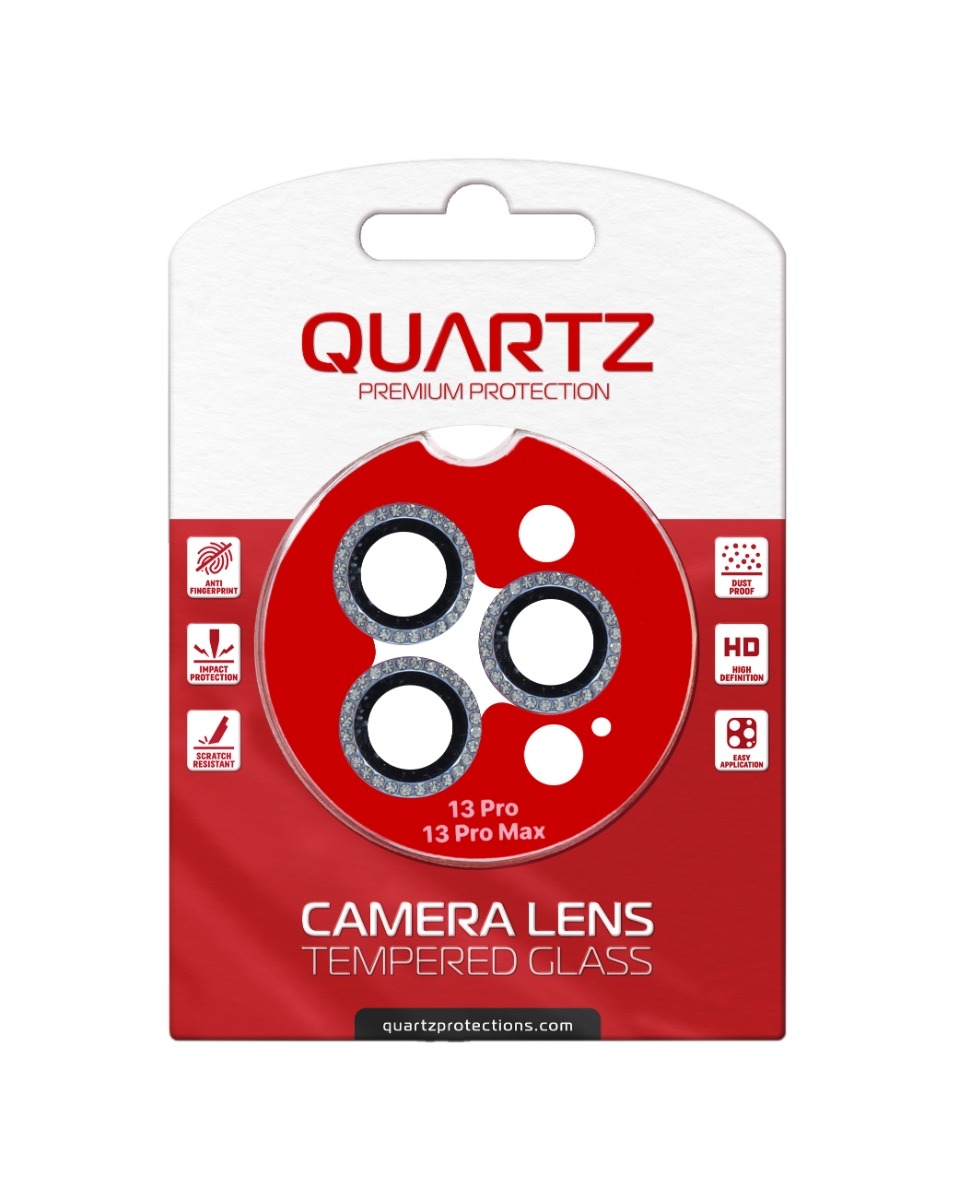 Product Color Badge Grab the wholesale deals on the QUARTZ HD Tempered Glass WHITE with Glitter Diamond Camera Lens for iPhone 13 Pro Max 13 Pro Back Camera.