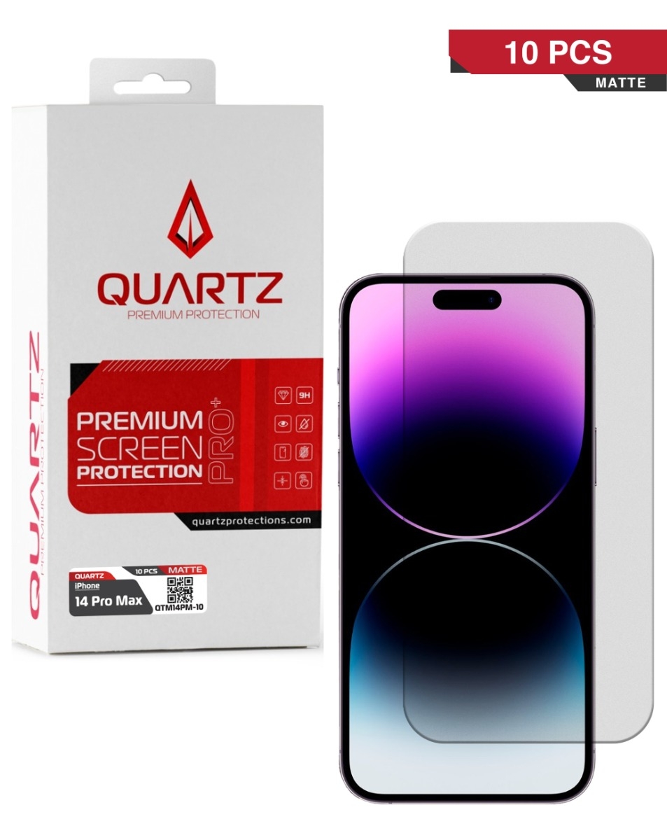 Shop the QUARTZ matte tempered glass for iPhone 14 Pro Max, pack of 10. QUARTZ Matte Tempered Glass for iPhone 14 Pro Max (Pack of 10) QUARTZ Matte Tempered Glass for iPhone 14 Pro Max (Pack of 10)