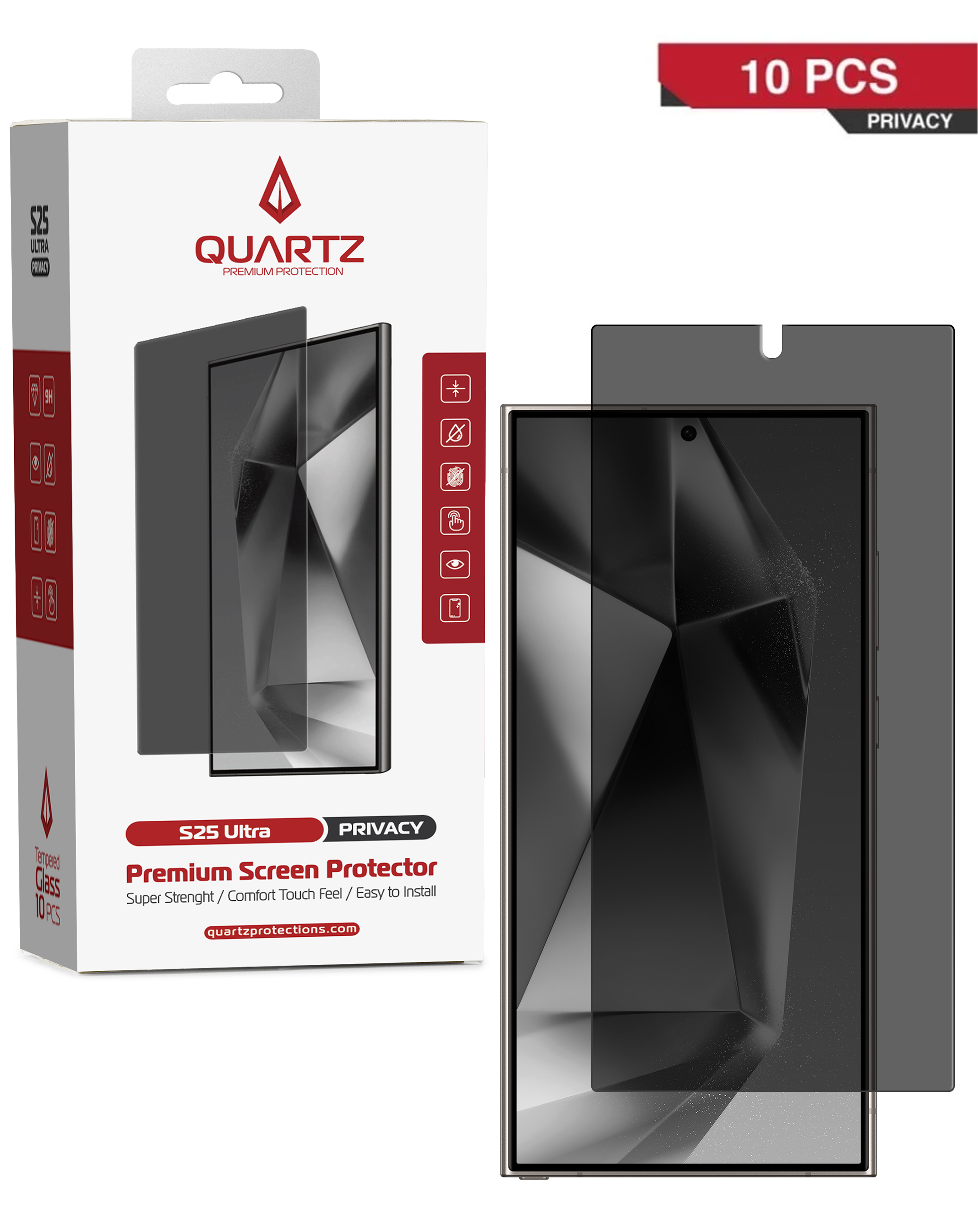 Order the QUARTZ Privacy Tempered Glass for Galaxy S24 Ultra, pack of 10.